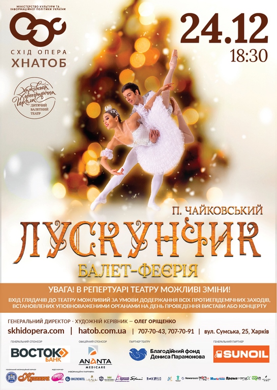 On Friday, December 24, 2021, at 18.30, on the Grand Stage of the Kharkiv National Academic Opera and Ballet Theatre named after M.V. Lysenko see the ballet “THE NUTCRACKER”.