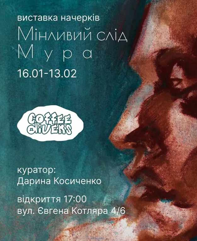 У кав’ярні «Coffee Divers» з 16 січня відкрилась перша персональна графічна виставка про рефлексію небінарного митця Мури за назвою «Мінливий слід».