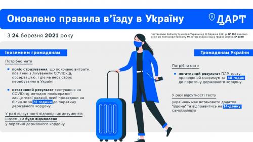 З 24 березня в Україні діятимуть нові правила в’їзду та виїзду на територію країни.