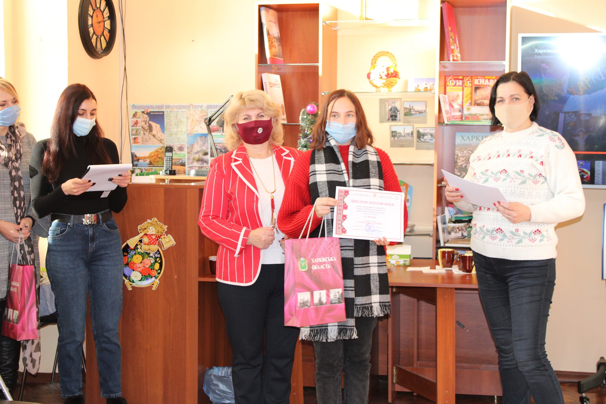 Церемонію нагородження переможців конкурсу провели директор ОКЗ «Харківський організаційно-методичний центр туризму» - Холодок Валентина Дмитрівна та начальник інформаційно-бібліографічного відділу ОКЗ «Харківська обласна бібліотека для юнацтва» Шевченко Євгенія Анатоліївна.