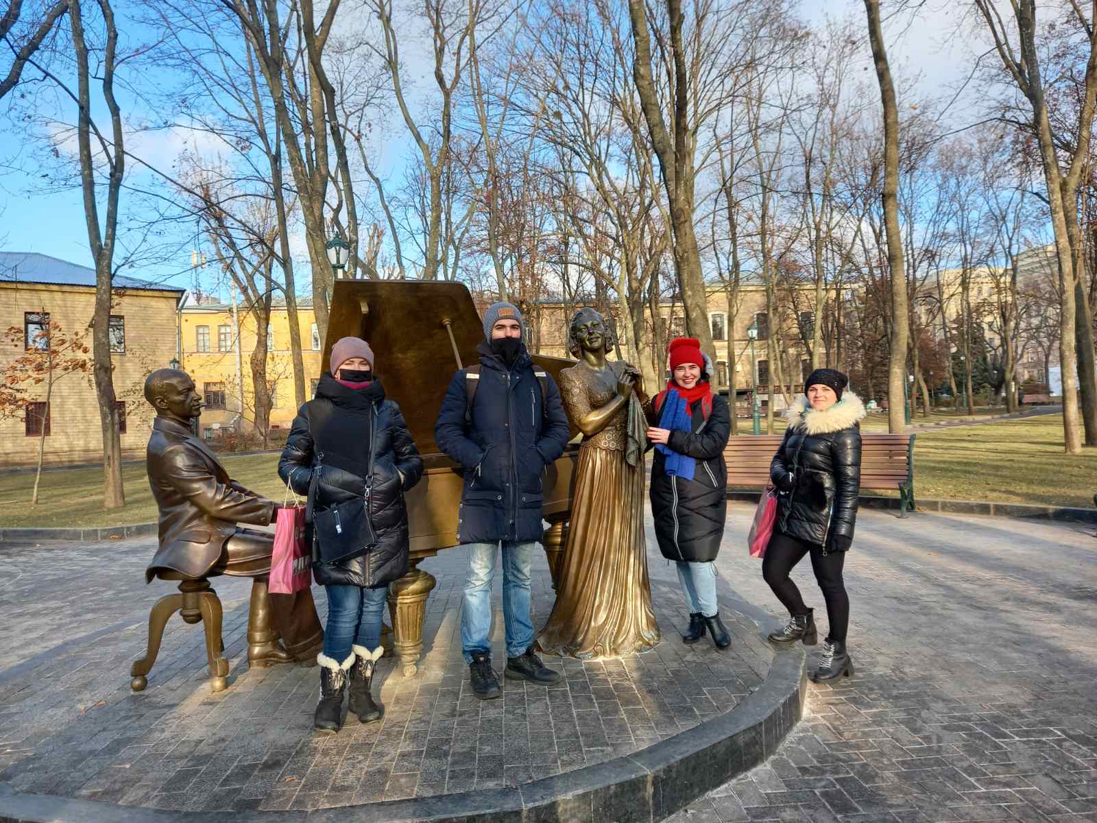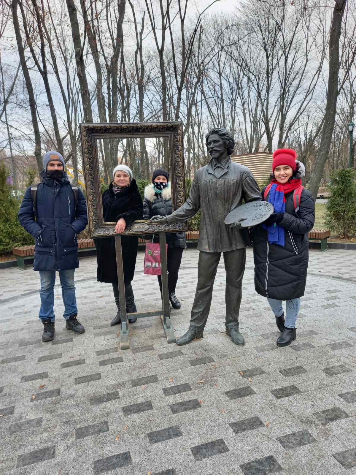 Після церемонії нагородження та чаювання наші гості були запрошені на пішоходну екскурсію міським садом ім. Т. Г. Шевченка, яка має назву «В бронзі та камені» і присвячена відомим персонам.