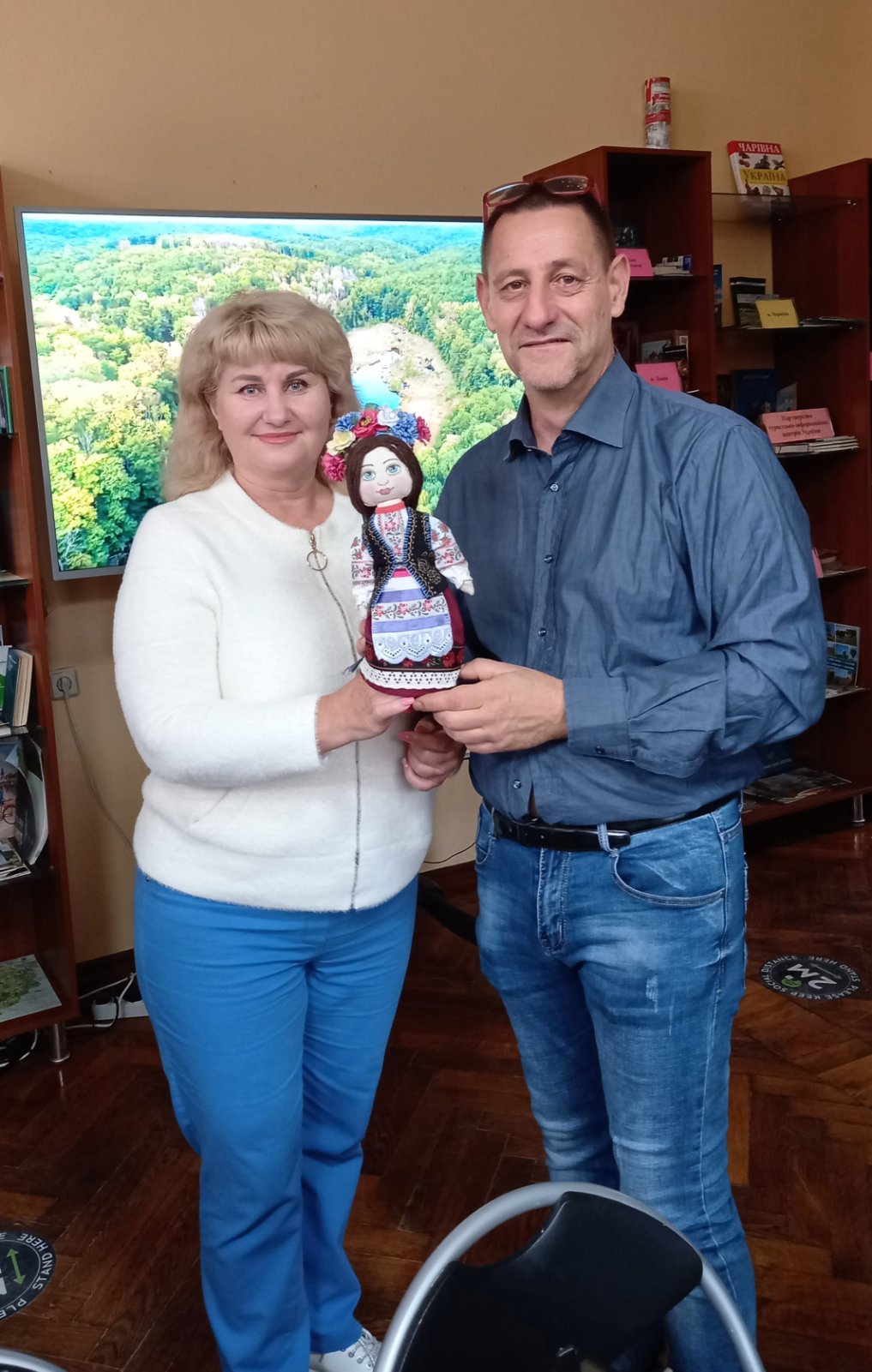 Сьогодні він віднайшов декілька вільних хвилинок у напруженому графіку задля знайомства з роботою обласного туристсько-інформаційного центру. Говорили про туристичний потенціал Харківщини, народні традиції, страви та напої - про все, що може бути цікавим для туриста. Не оминули тему автентичної сувенірної продукції. Особливо до душі нашому гостю припали роботи майстрині з Дергачівщини Інни Бибич. Тож одна з їх авторських ляльок тепер буде жити в Італії.