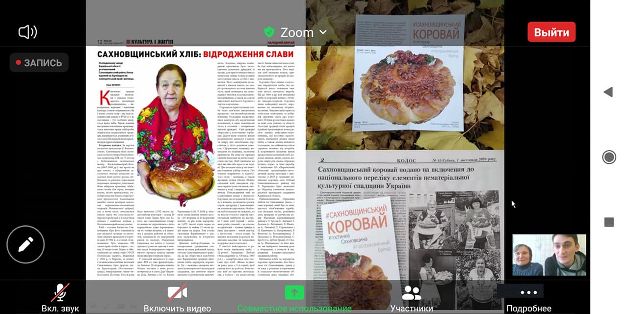 Своїми гастрономічними досягненнями поділились - Олег Яриніч, завідувач сектором краєзнавства Сахновщинського районного будинку культури, учасник обласного молодіжного конкурсу на кращу екскурсію «Відкриваймо Харківщину» та Лариса Кошляк, провідна зберігачка Комунального закладу «Сахновщинський районний історико-краєзнавчий музей».