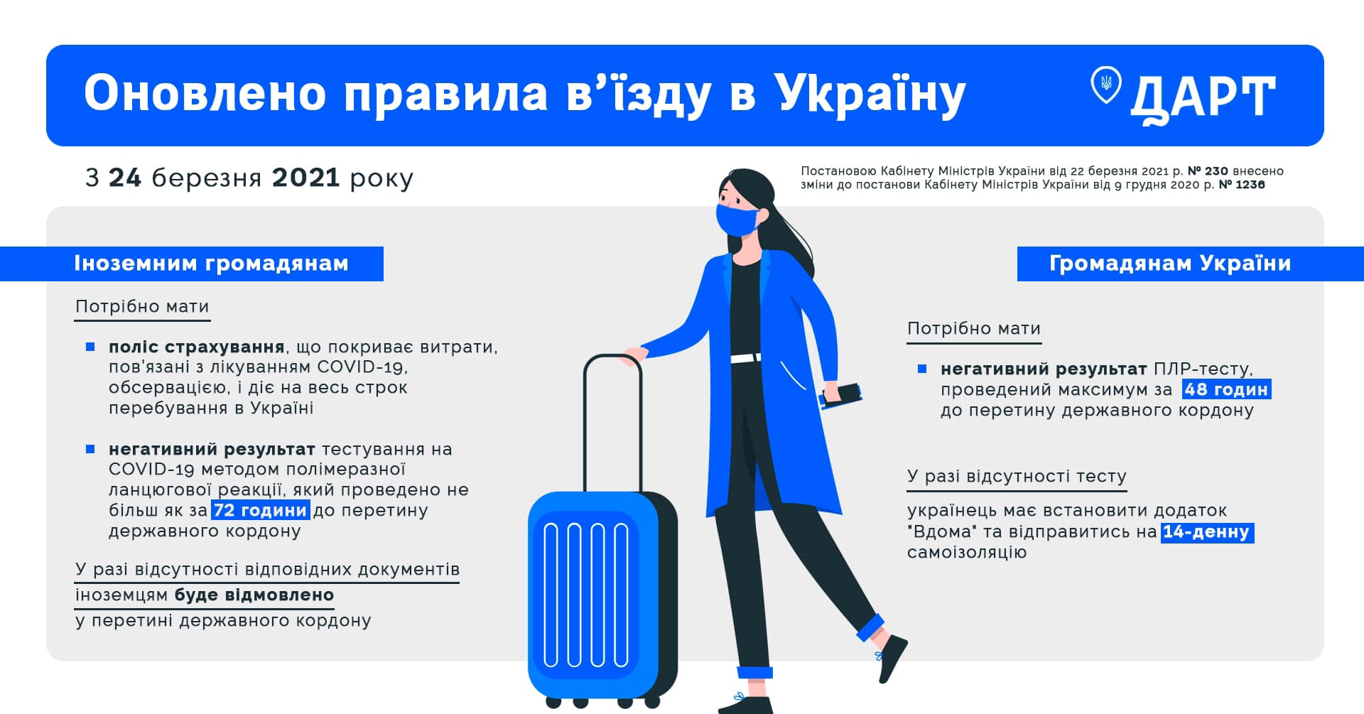 🔸Тепер для в’їзду в Україну всім іноземцям незалежно від країни прибуття потрібно мати страховий поліс, що покриває витрати, пов’язані з лікуванням Covid-19.