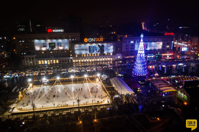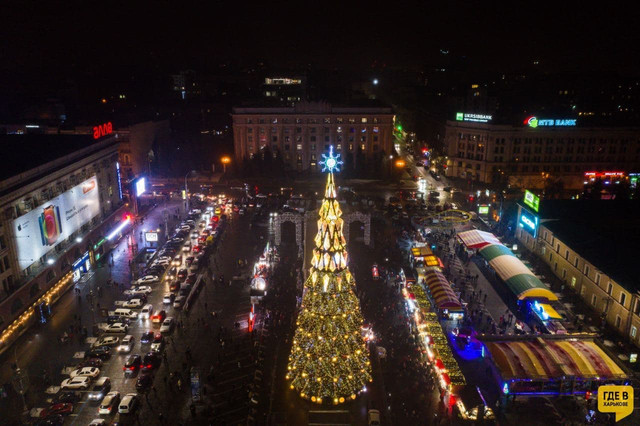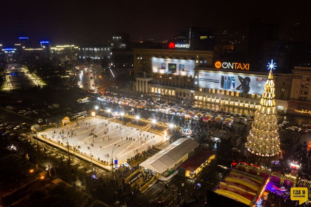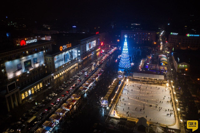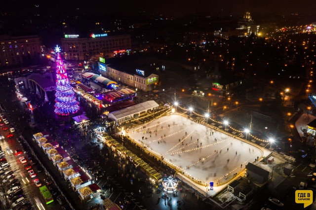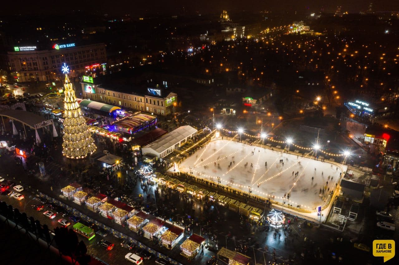 Новорічне містечко на площі Свободи в Харкові показали з висоти пташиного польоту. Фото опубліковані в одному з телеграм-каналів.