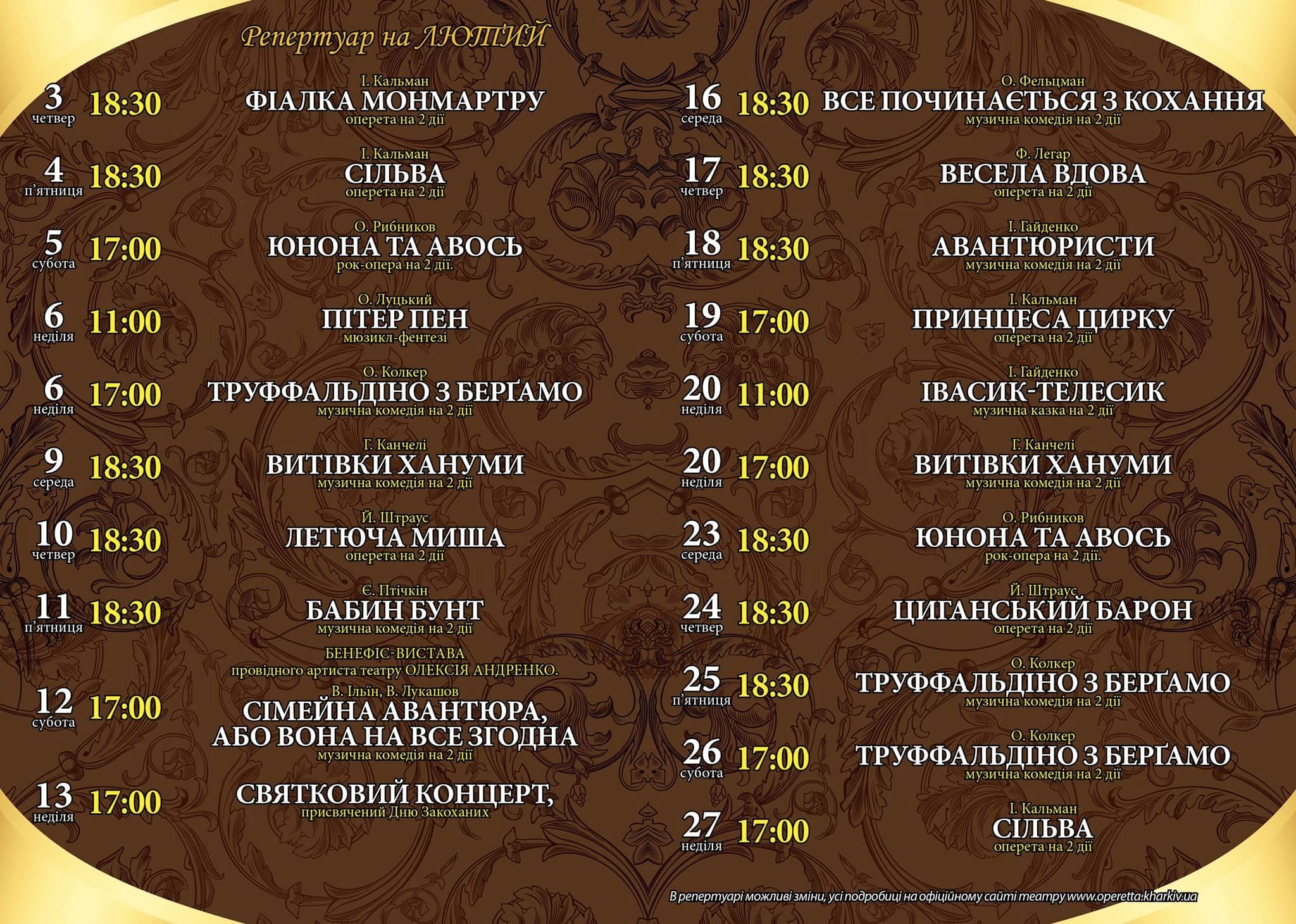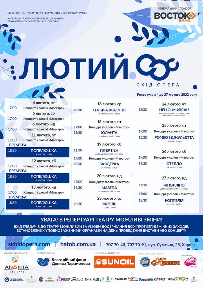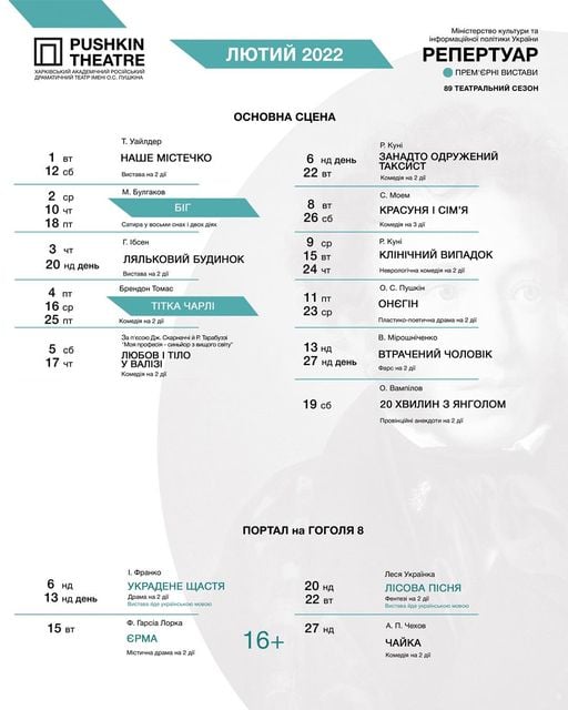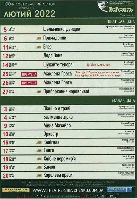 Театральна афіша на лютий 2022 року.