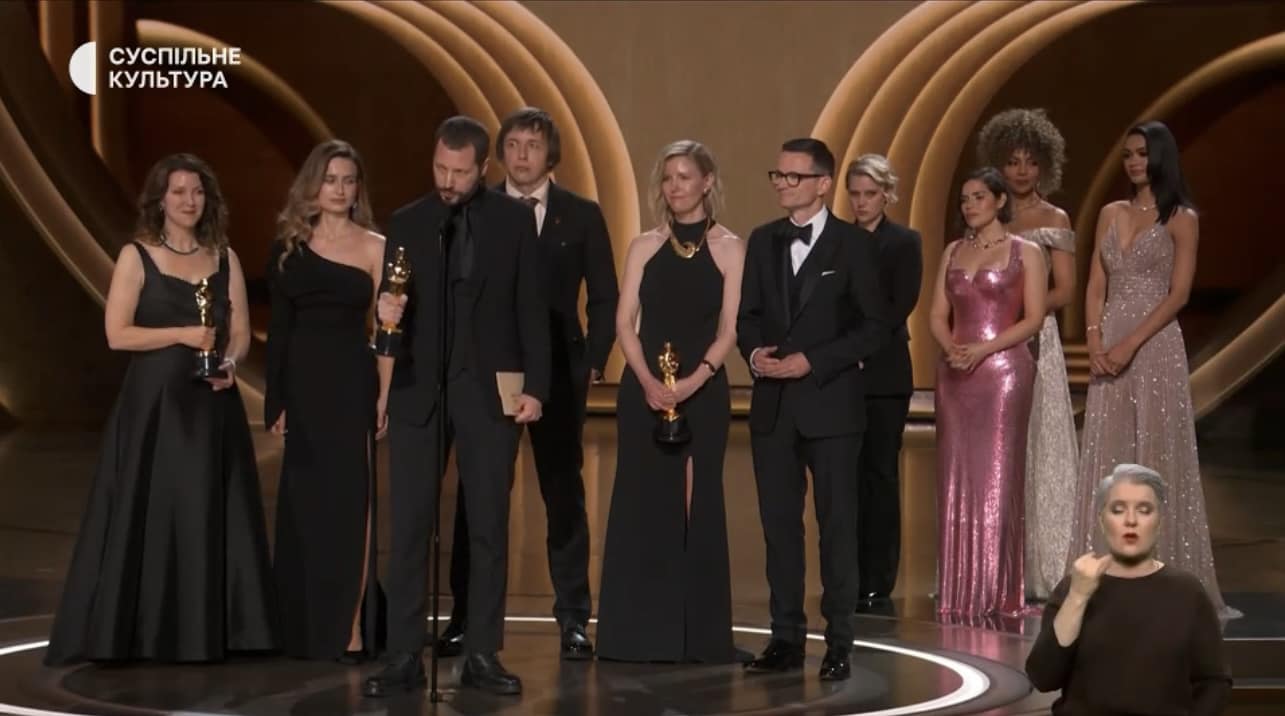 «Дякую всім, хто допомагав створити цей фільм і супроводжував мене в цій подорожі. Це перший «Оскар» в історії України. Це честь для мене. Але напевно я буду першим режисером на цій сцені, який скаже, краще б я ніколи не знімав цього фільму. Якби я міг змінити це. Щоб росія ніколи не нападала на Україну, ніколи не окуповувала наші міста.