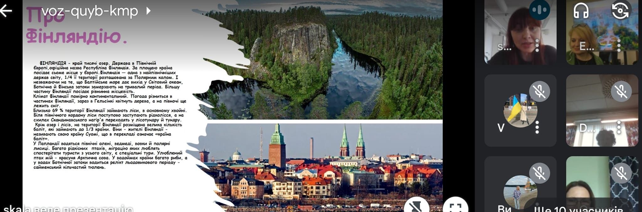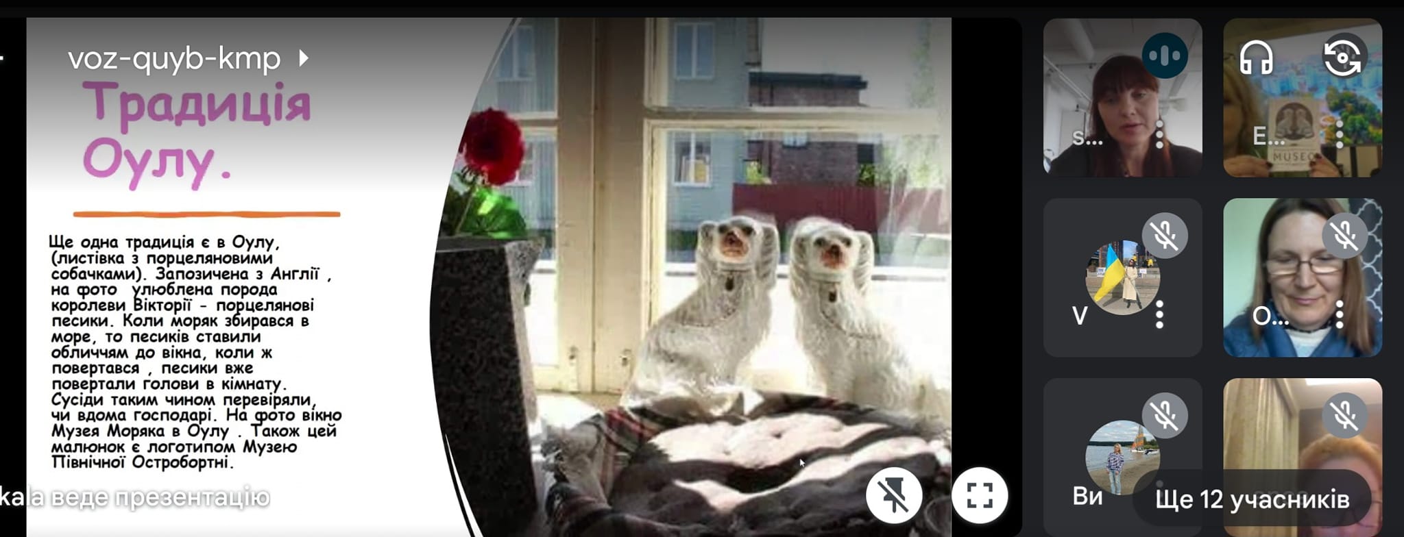 Ну, а якщо серйозно, то наша «Екскурсія на стільцях «Оулу – затишне північне місто. Життя на межі з Лапландією» від Олени Дюженко була лише часточкою великого комунікативного онлайн-заходу між Громадським Центром Д-Ассема та ОКЗ «Харківський організаційно-методичний центр туризму», яка мала на меті налагодження дружніх зв’язків між двома культурними столицями Харковом та Оулу з метою подальшої співпраці. І розпочалася вона зі знайомства та привітальних слів. А оскільки планувалося говорити про історію, культуру та традиції наших народів, тобто саме про те, що спонукає людину мандрувати світом, то перше слово було надано директору ОКЗ «ХОМЦТ» Валентині Холодок.