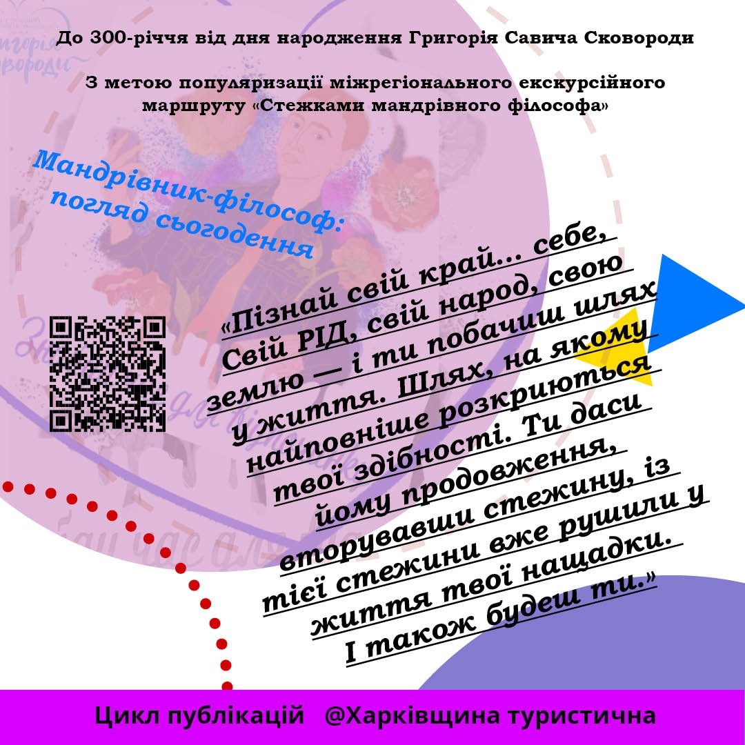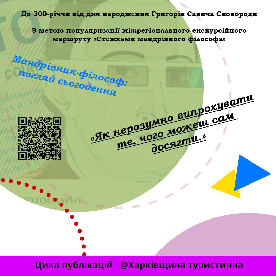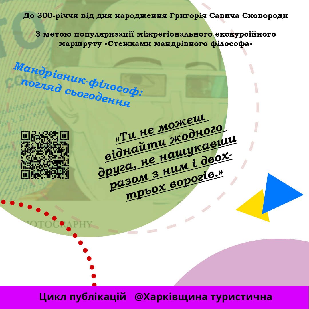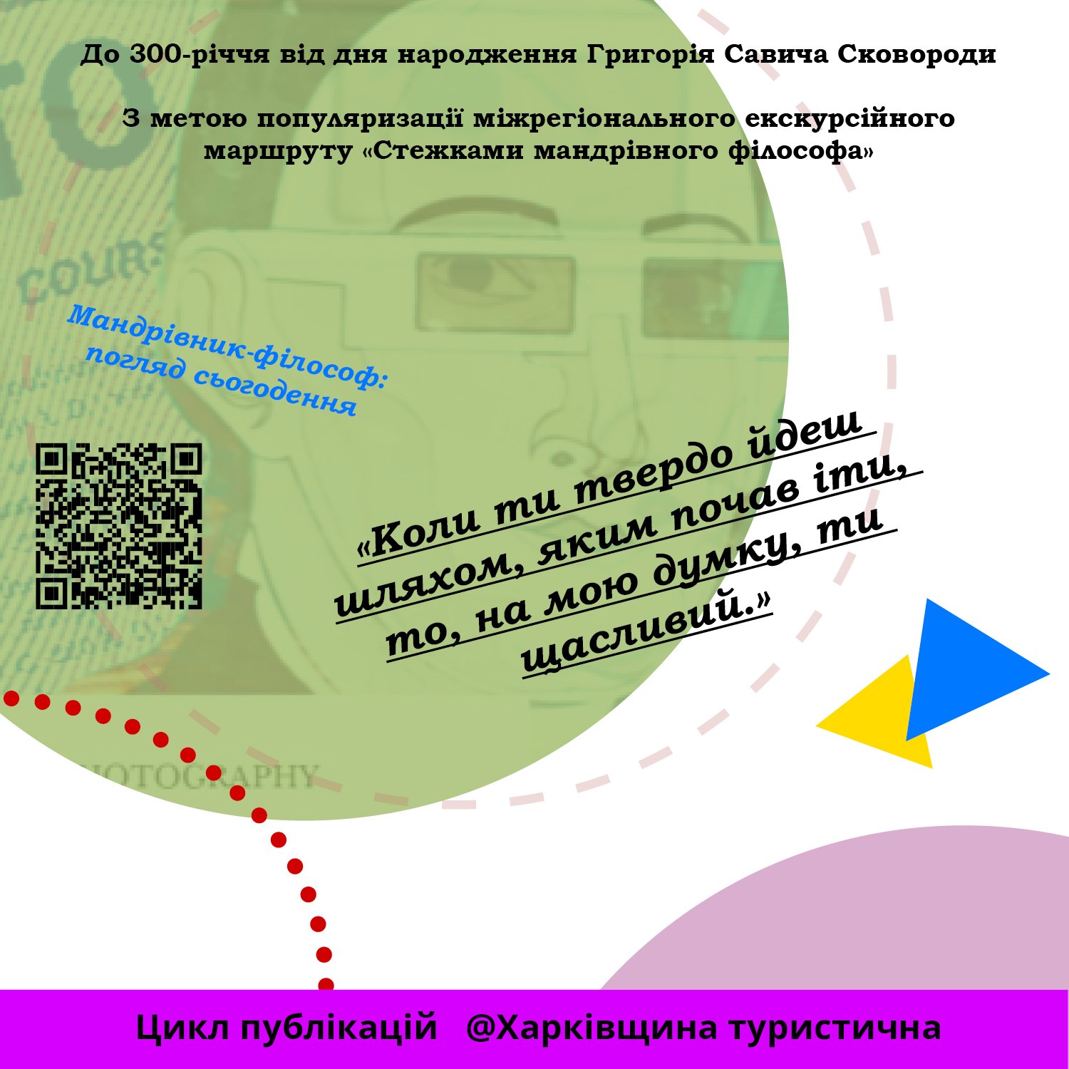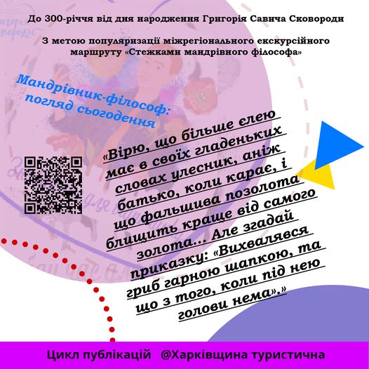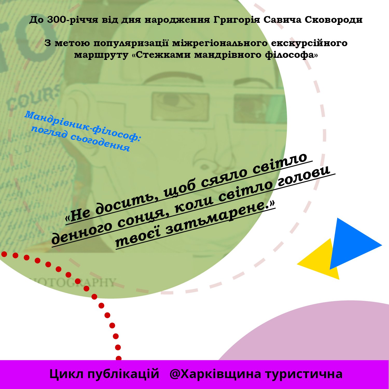 Цим проєктом ми нагадуємо про відзначення 300-річчя від дня народження Григорія Савича Сковороди у 2022 році та популяризуємо міжрегіональний екскурсійний маршрут «Стежками мандрівного філософа».