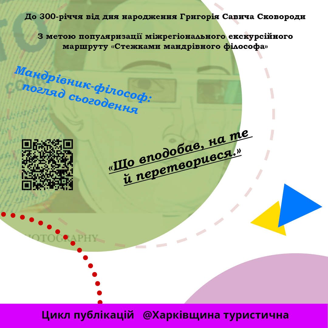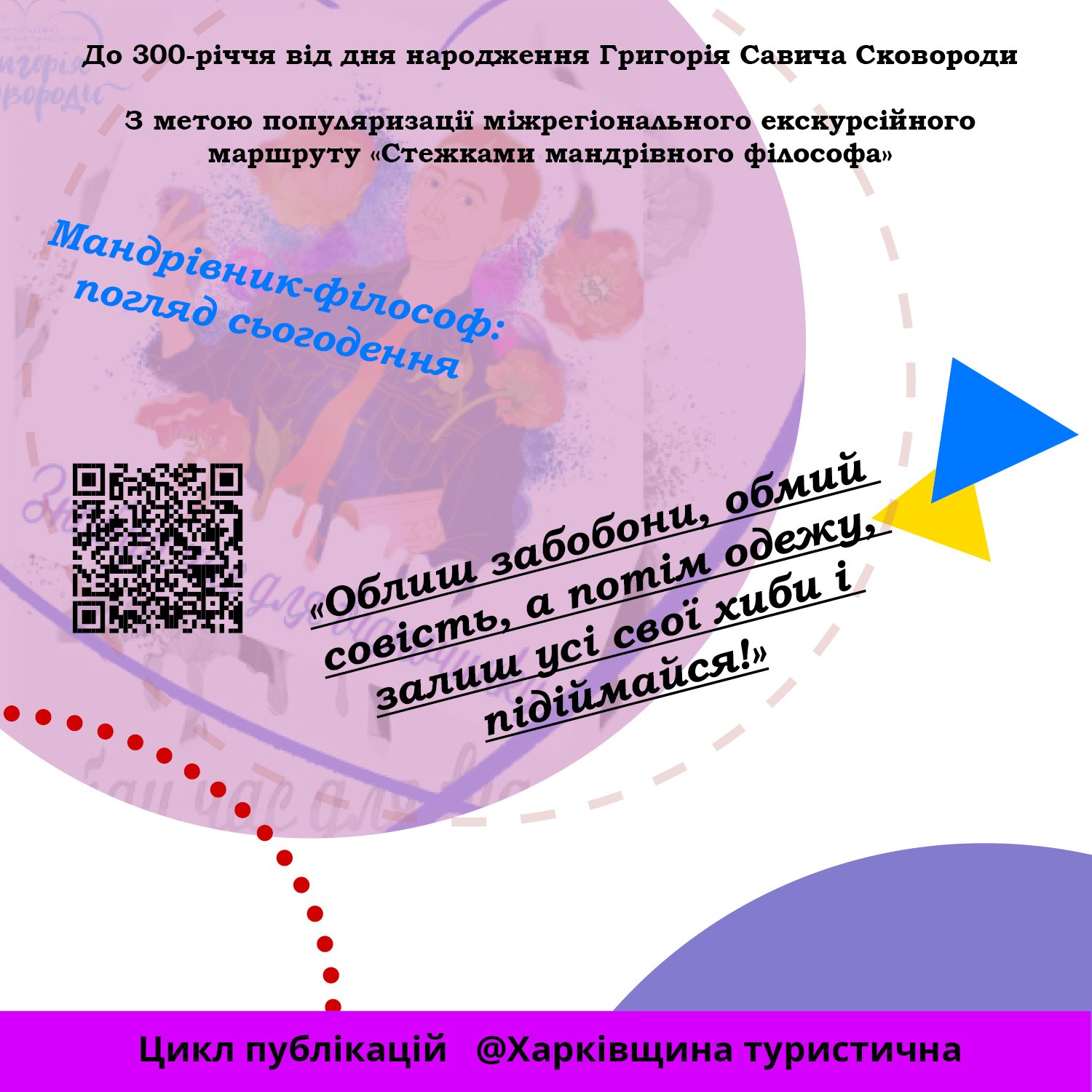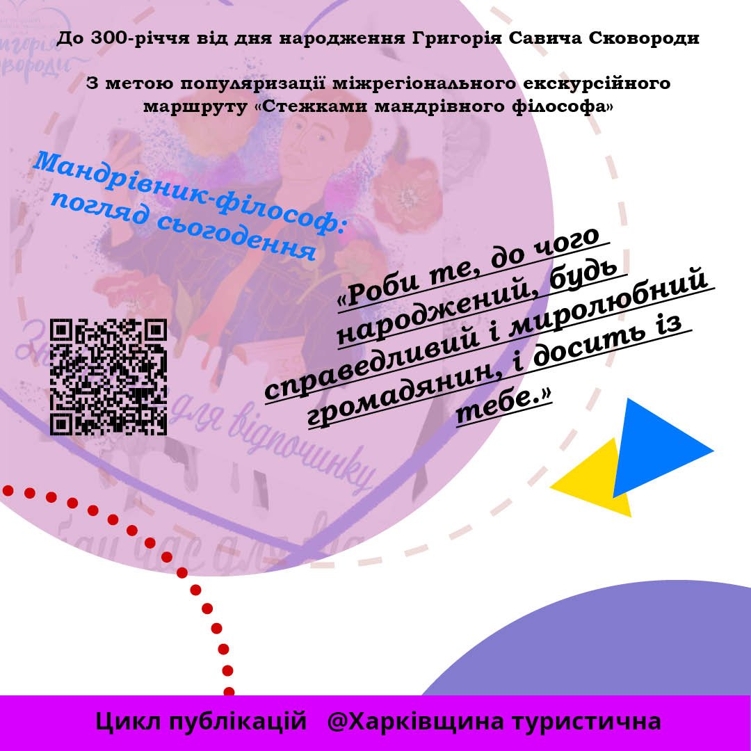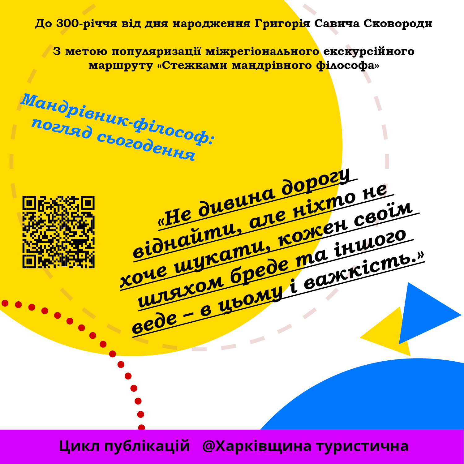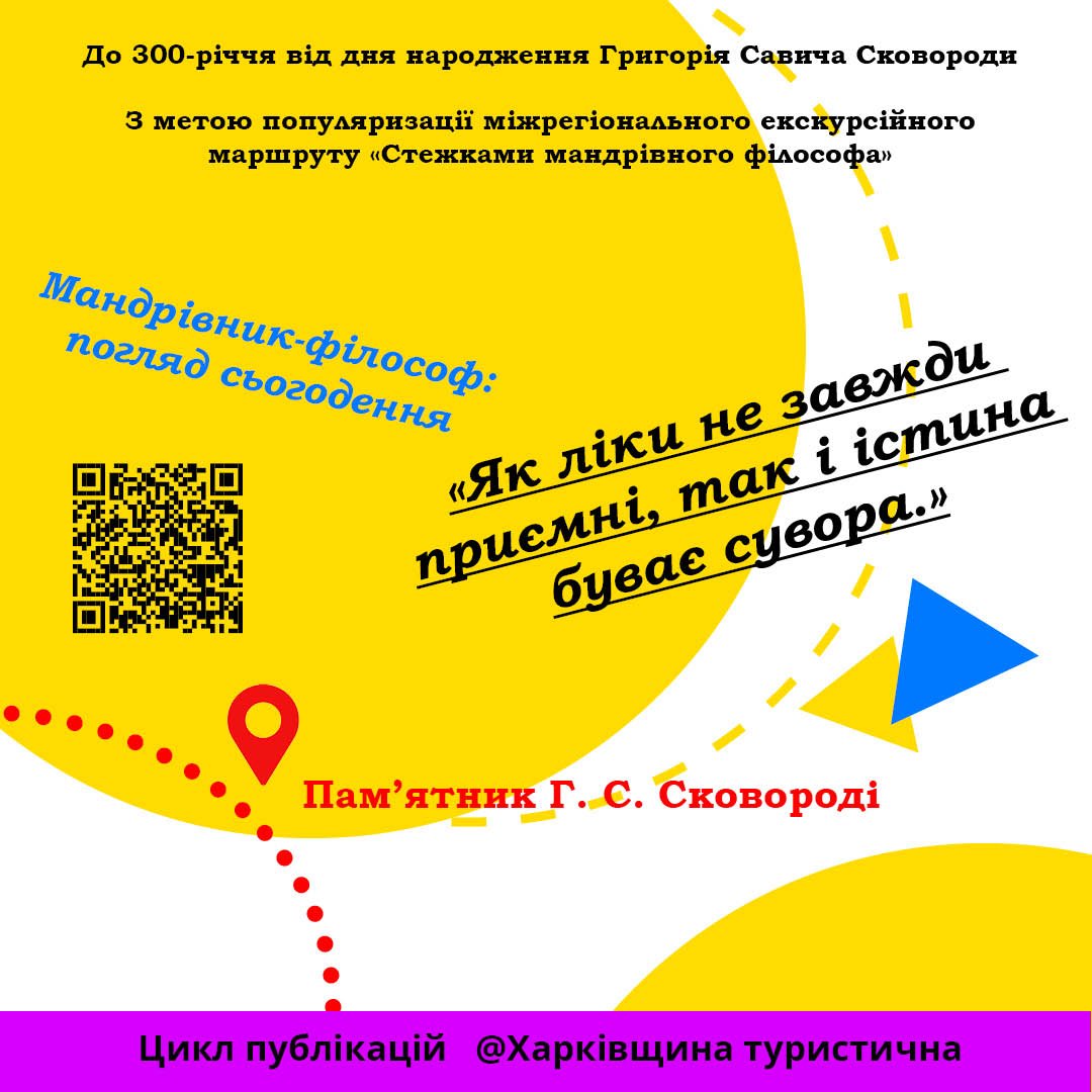 Цим проєктом ми нагадуємо про відзначення 300-річчя від дня народження Григорія Савича Сковороди у 2022 році та популяризуємо міжрегіональний екскурсійний маршрут «Стежками мандрівного філософа».