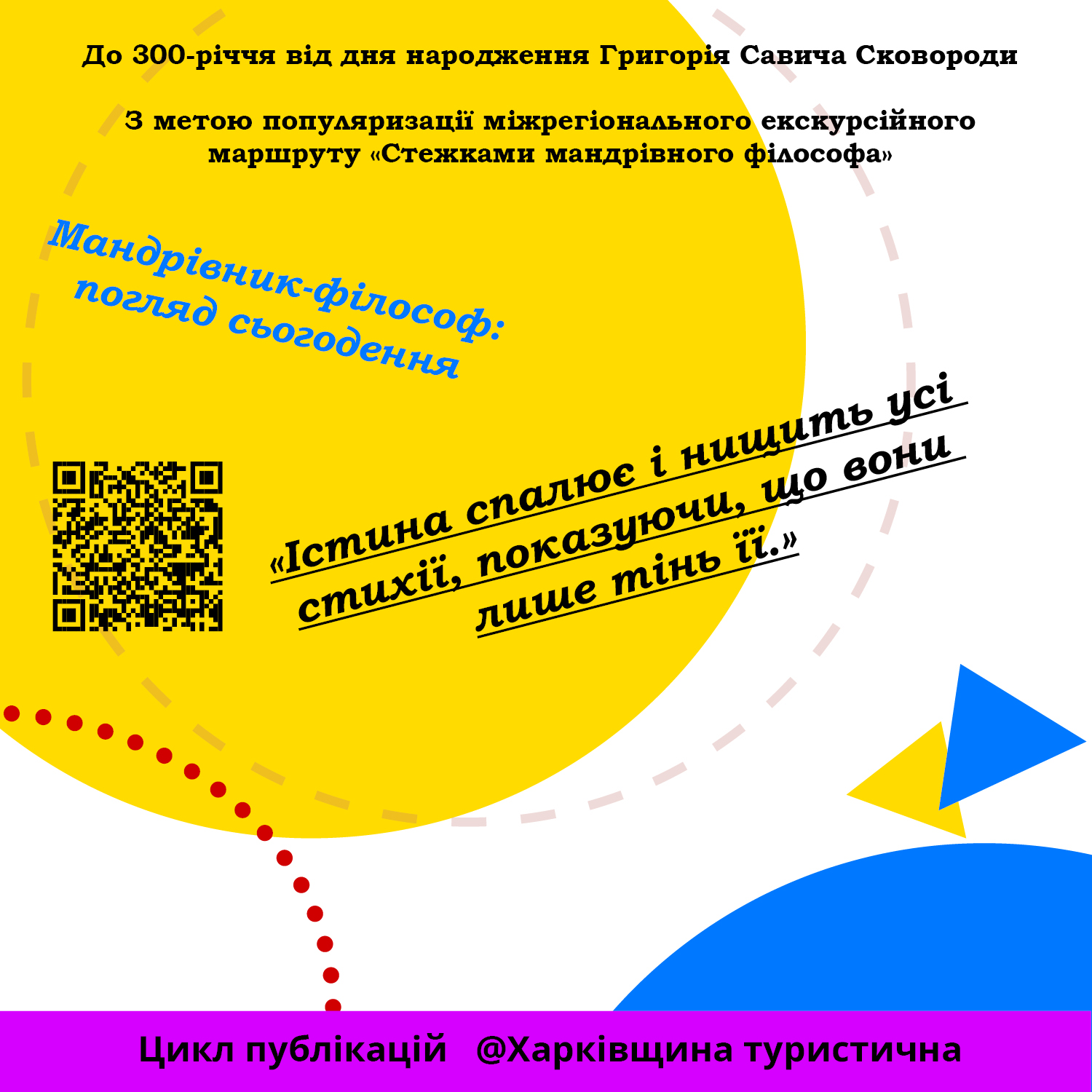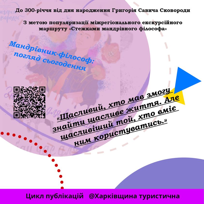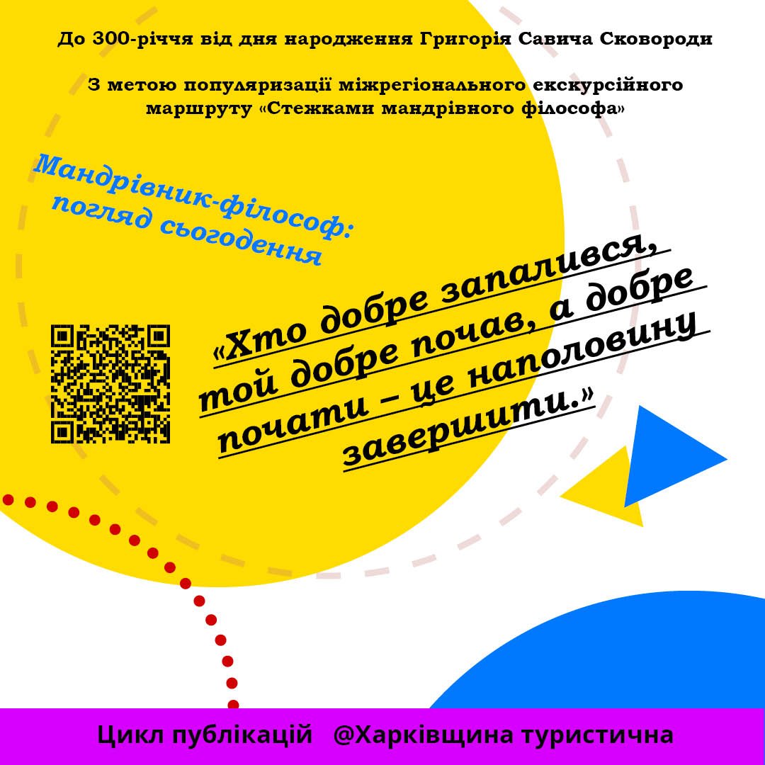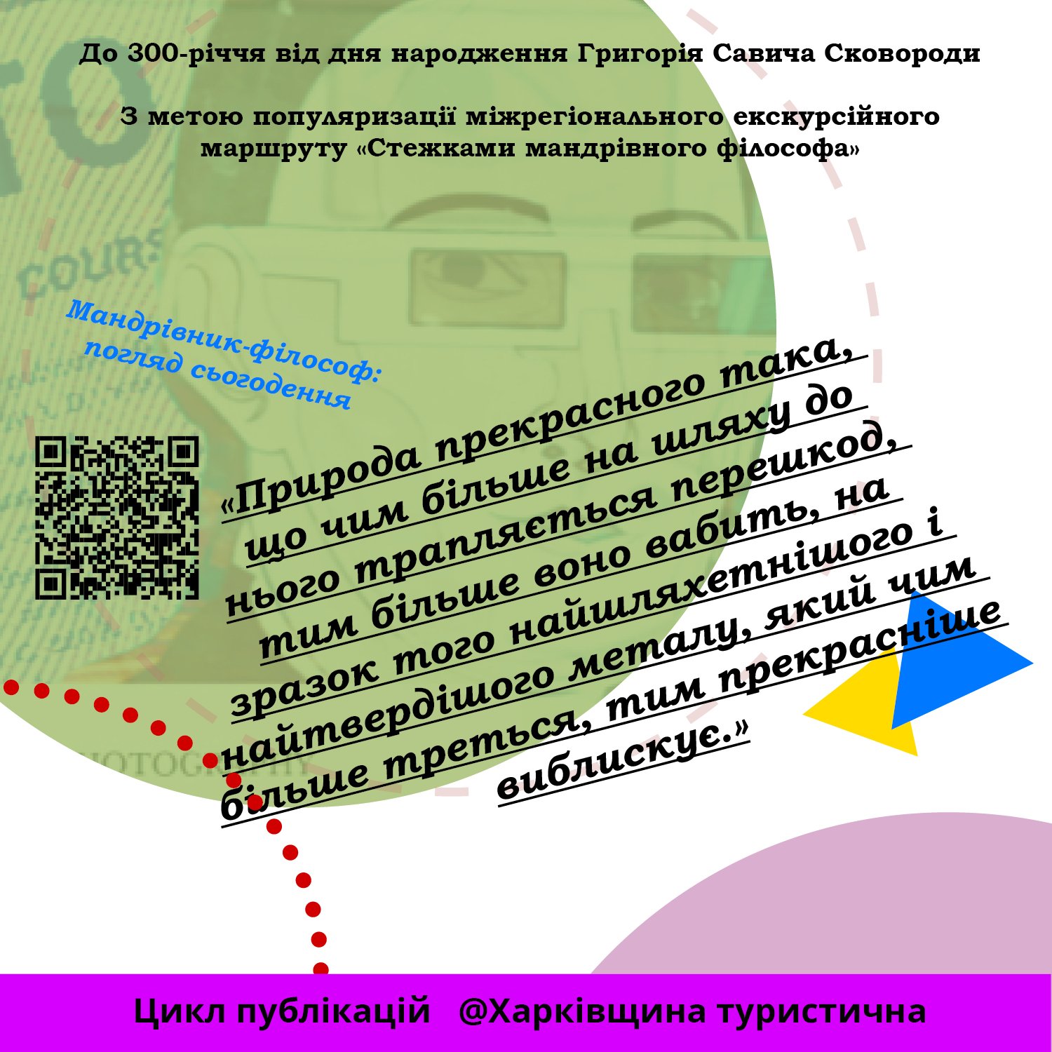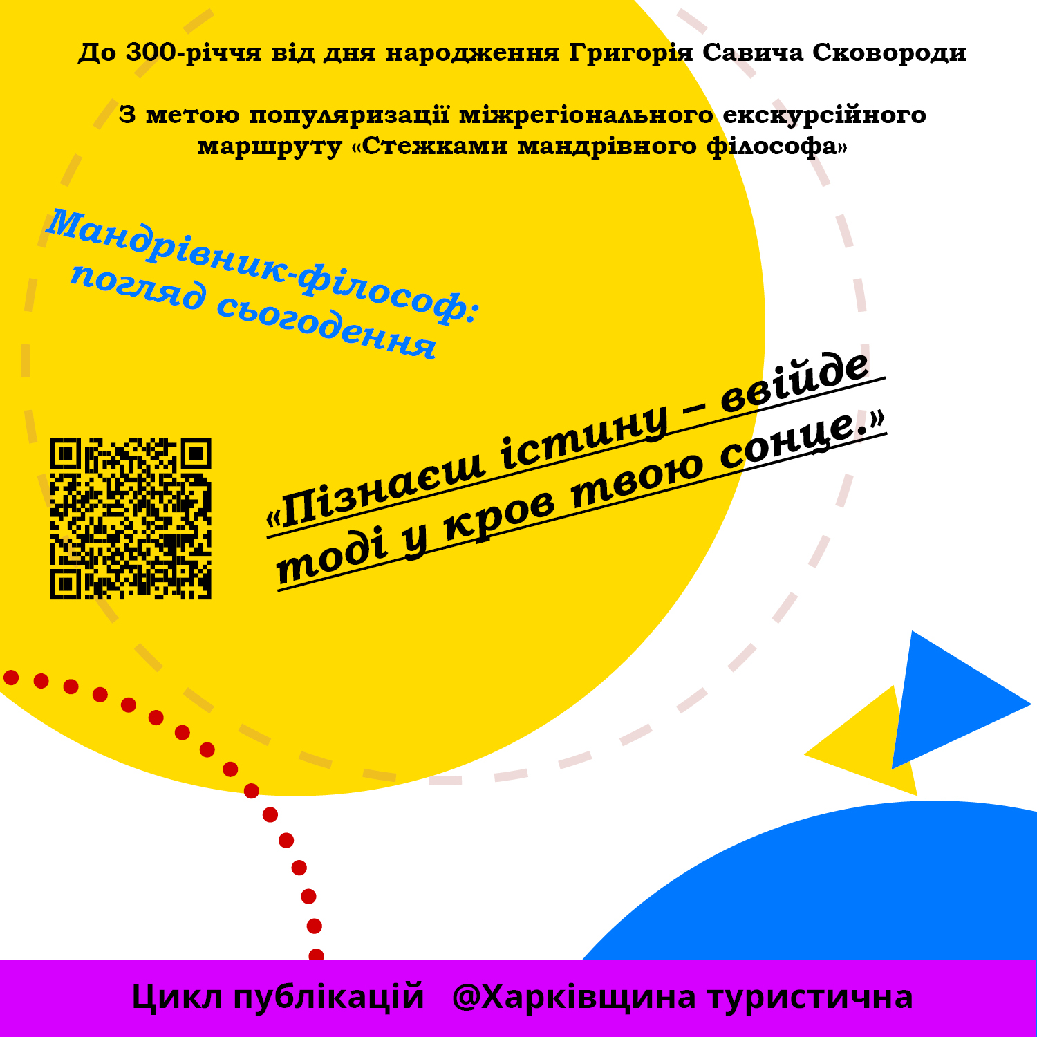 Цим проєктом ми нагадуємо про відзначення 300-річчя від дня народження Григорія Савича Сковороди у 2022 році та популяризуємо міжрегіональний екскурсійний маршрут «Стежками мандрівного філософа».