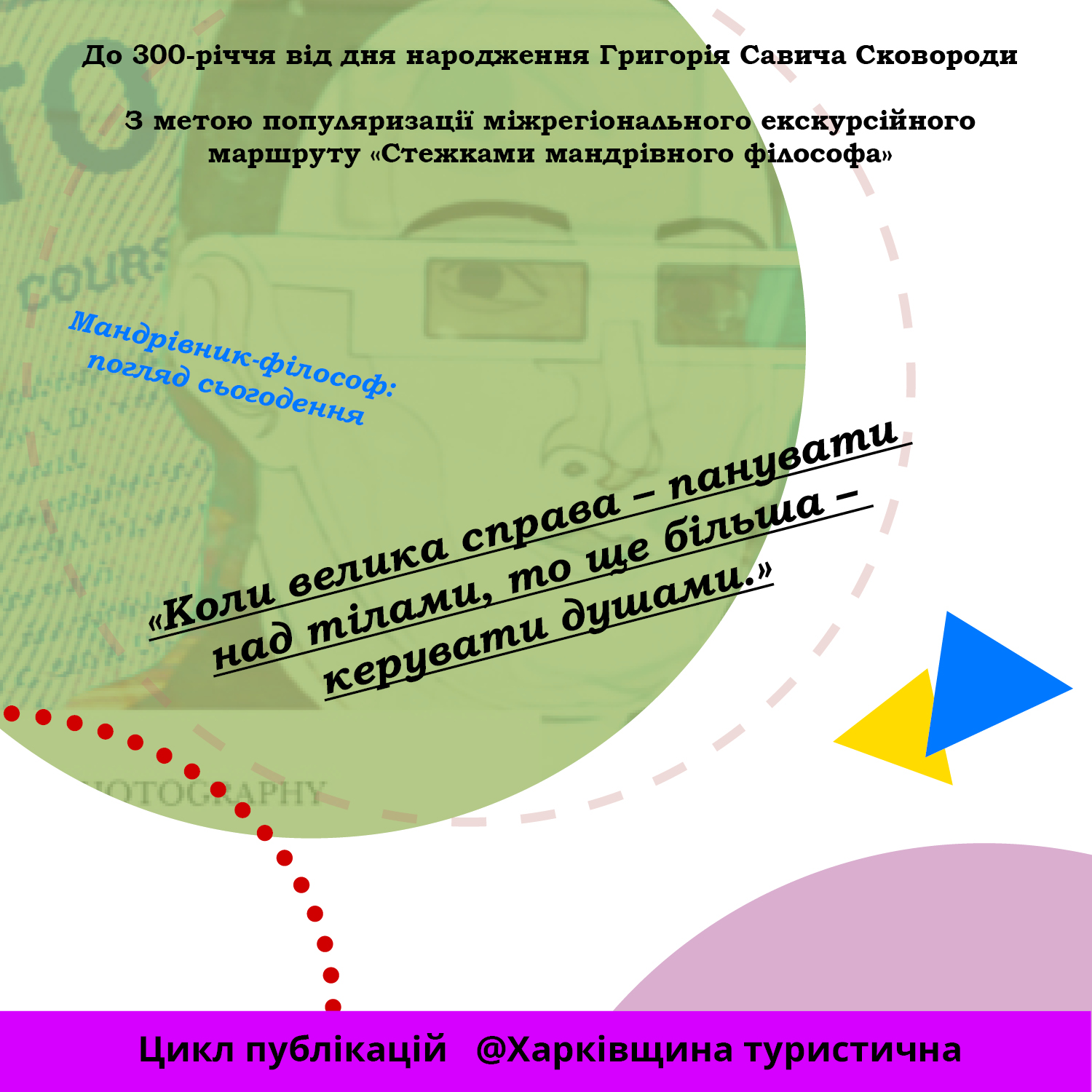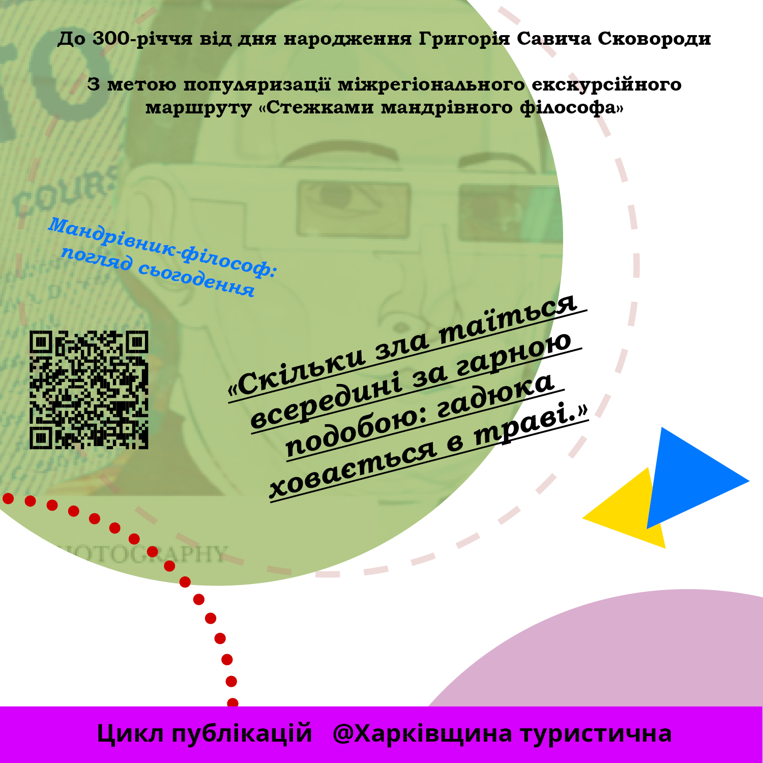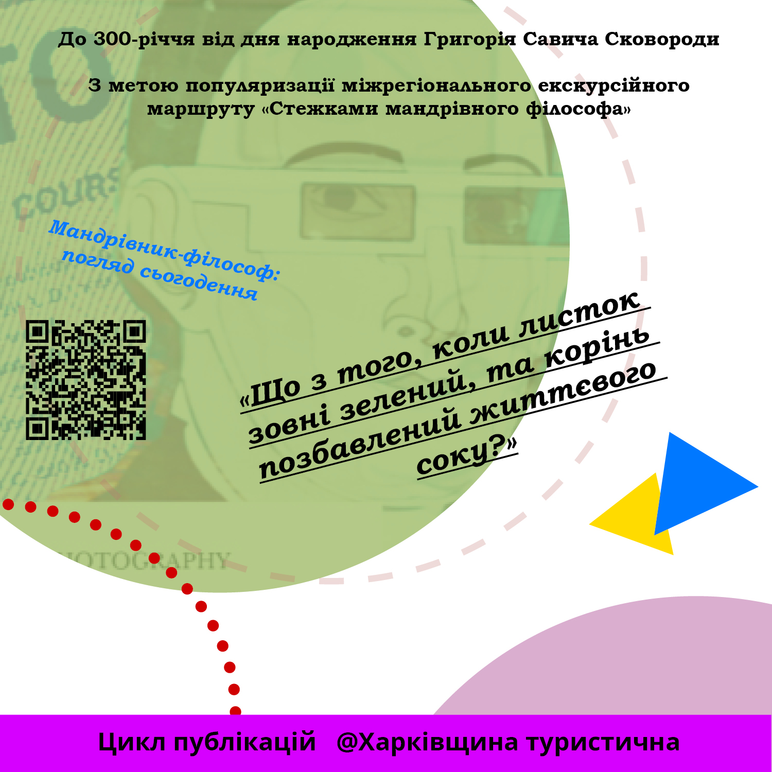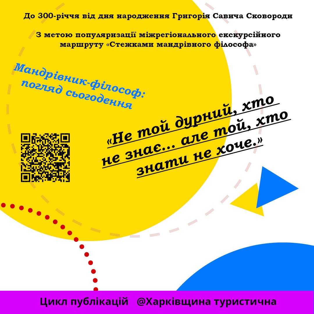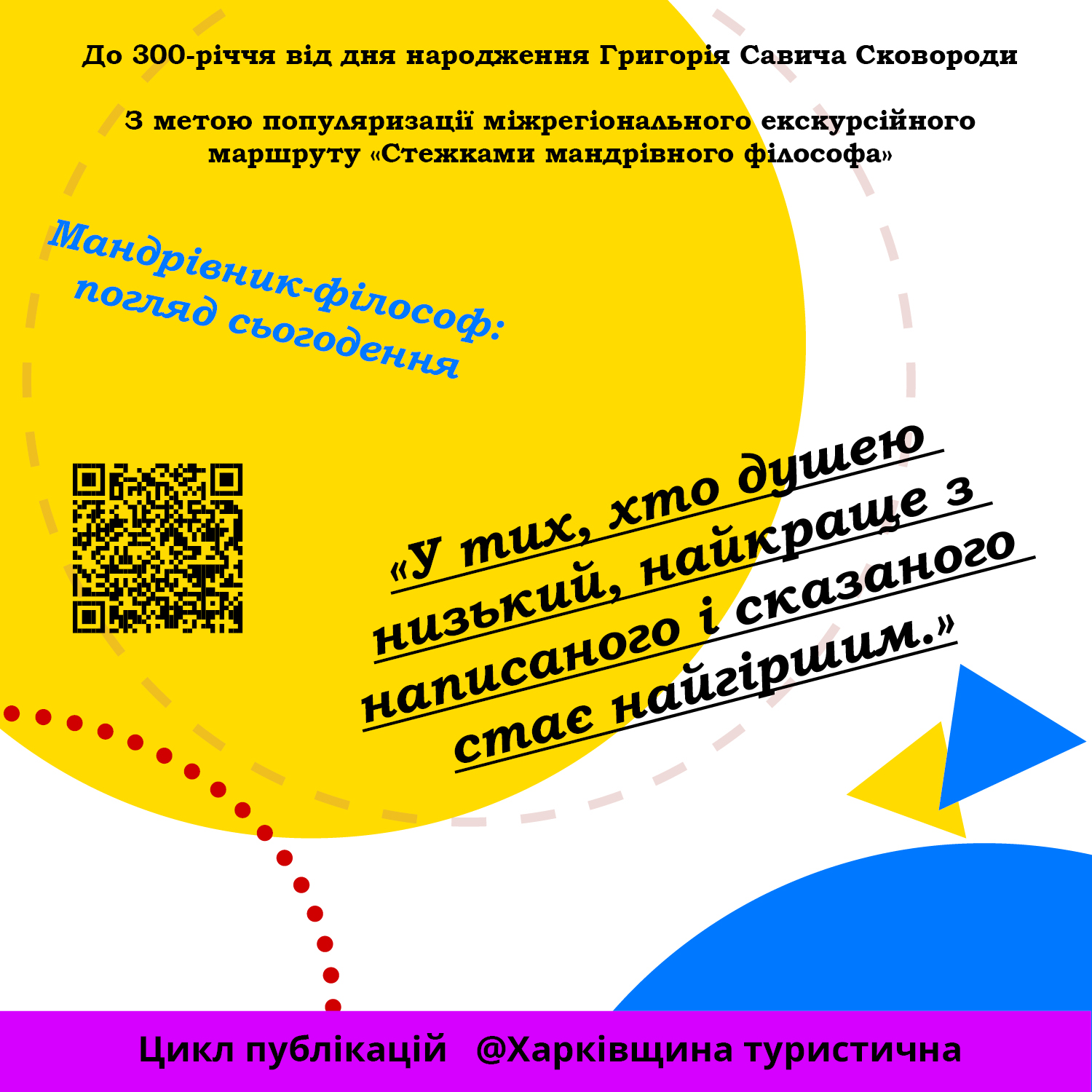 Цим проєктом ми нагадуємо про відзначення 300-річчя від дня народження Григорія Савича Сковороди у 2022 році та популяризуємо міжрегіональний екскурсійний маршрут «Стежками мандрівного філософа».
