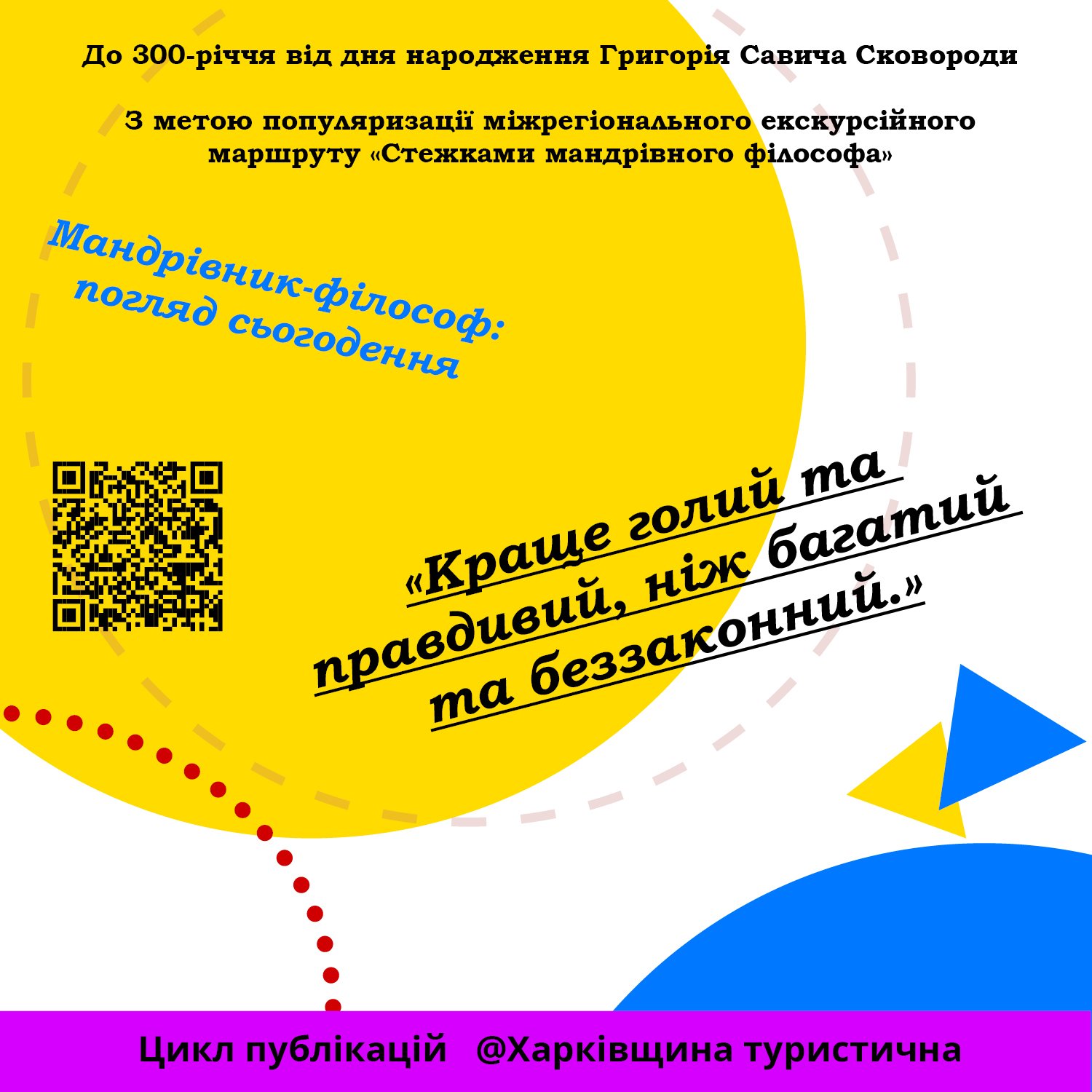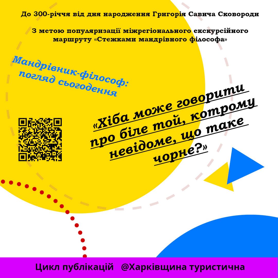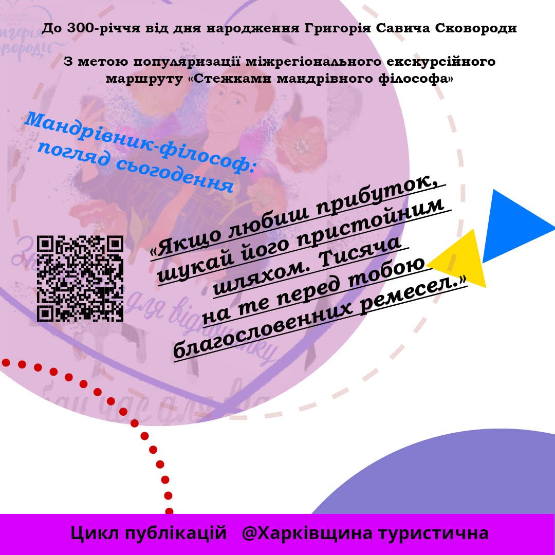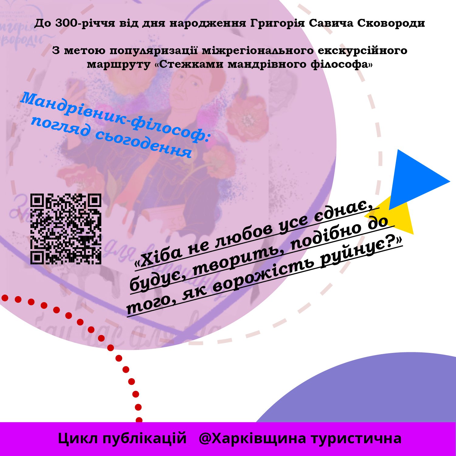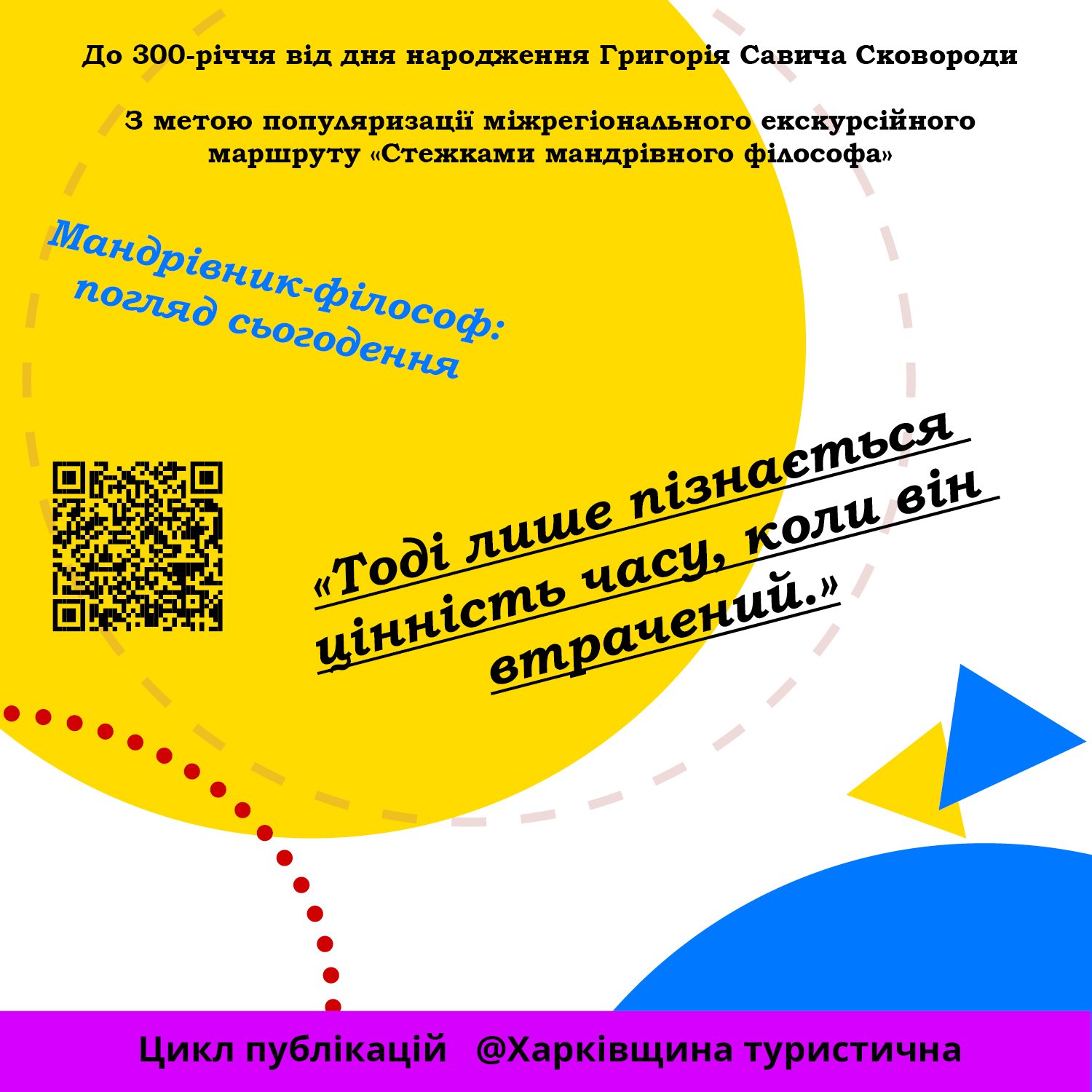 Цим проєктом ми нагадуємо про відзначення 300-річчя від дня народження Григорія Савича Сковороди у 2022 році та популяризуємо міжрегіональний екскурсійний маршрут «Стежками мандрівного філософа».