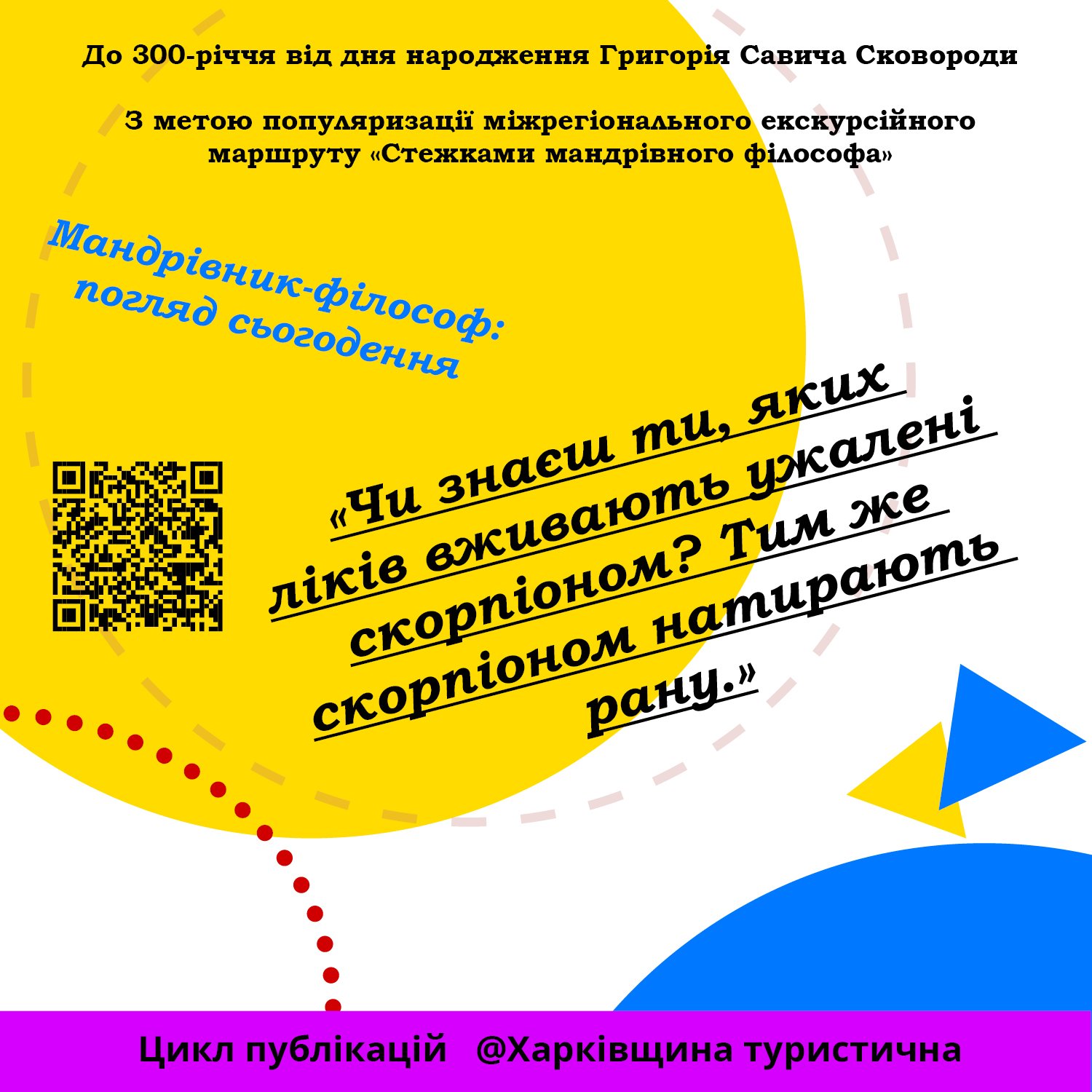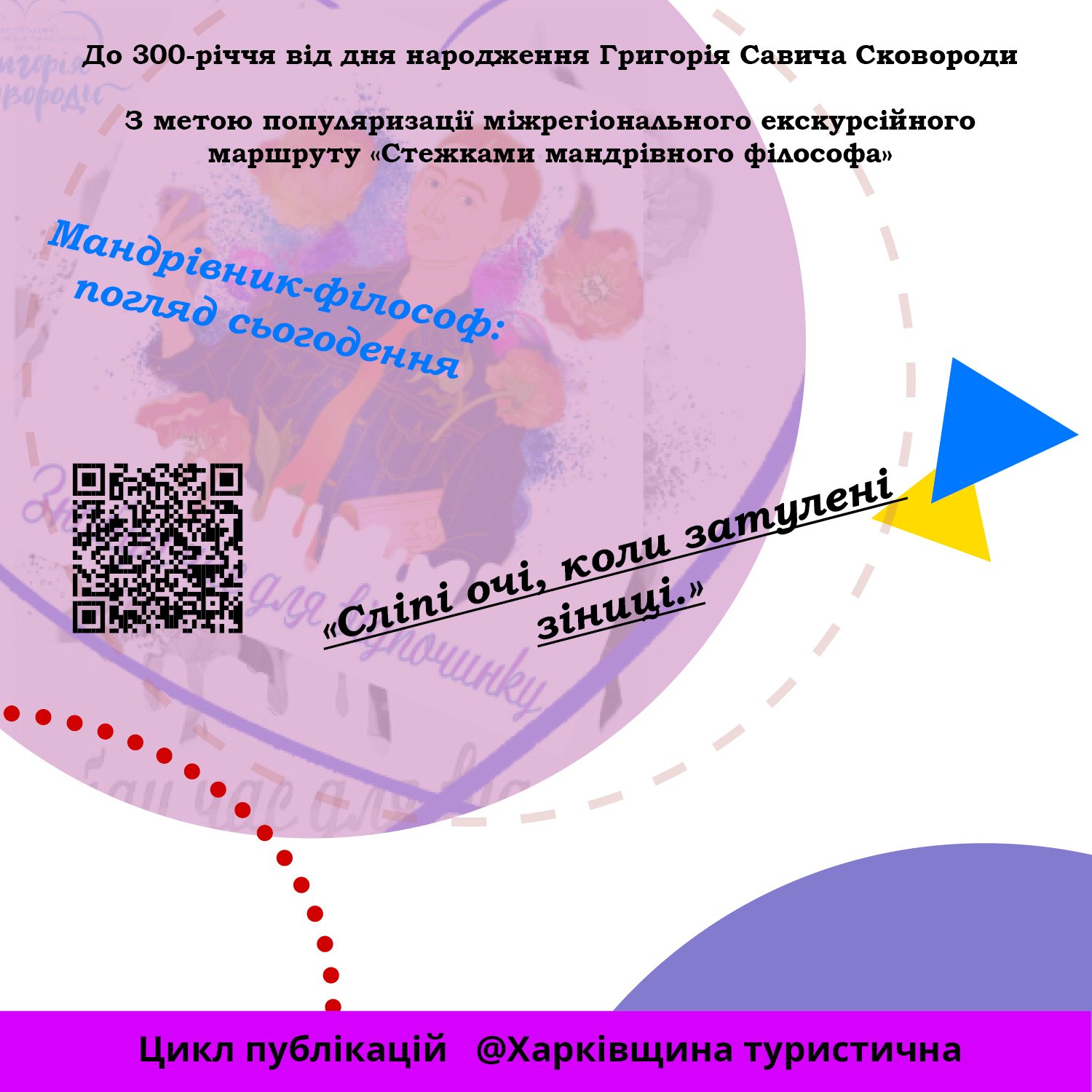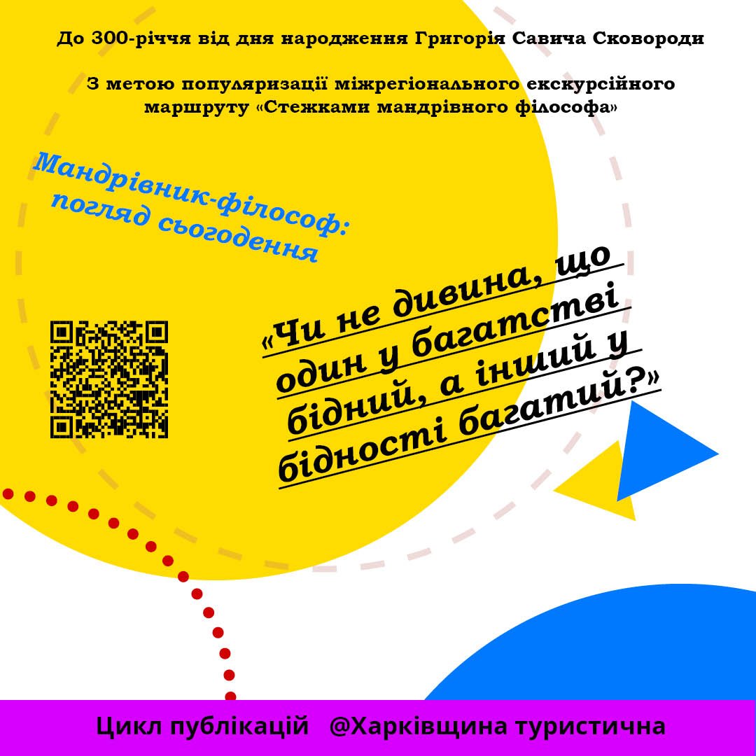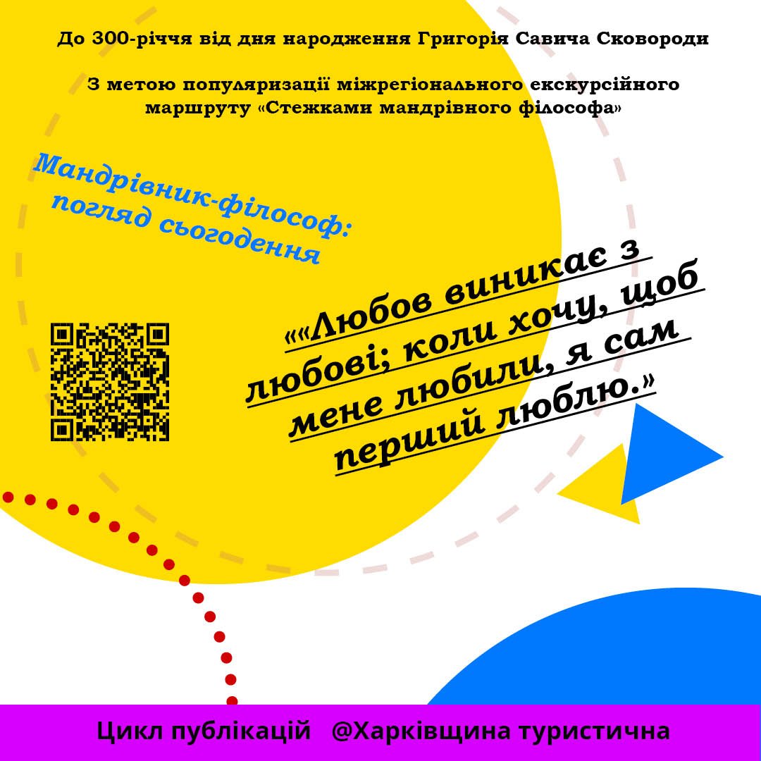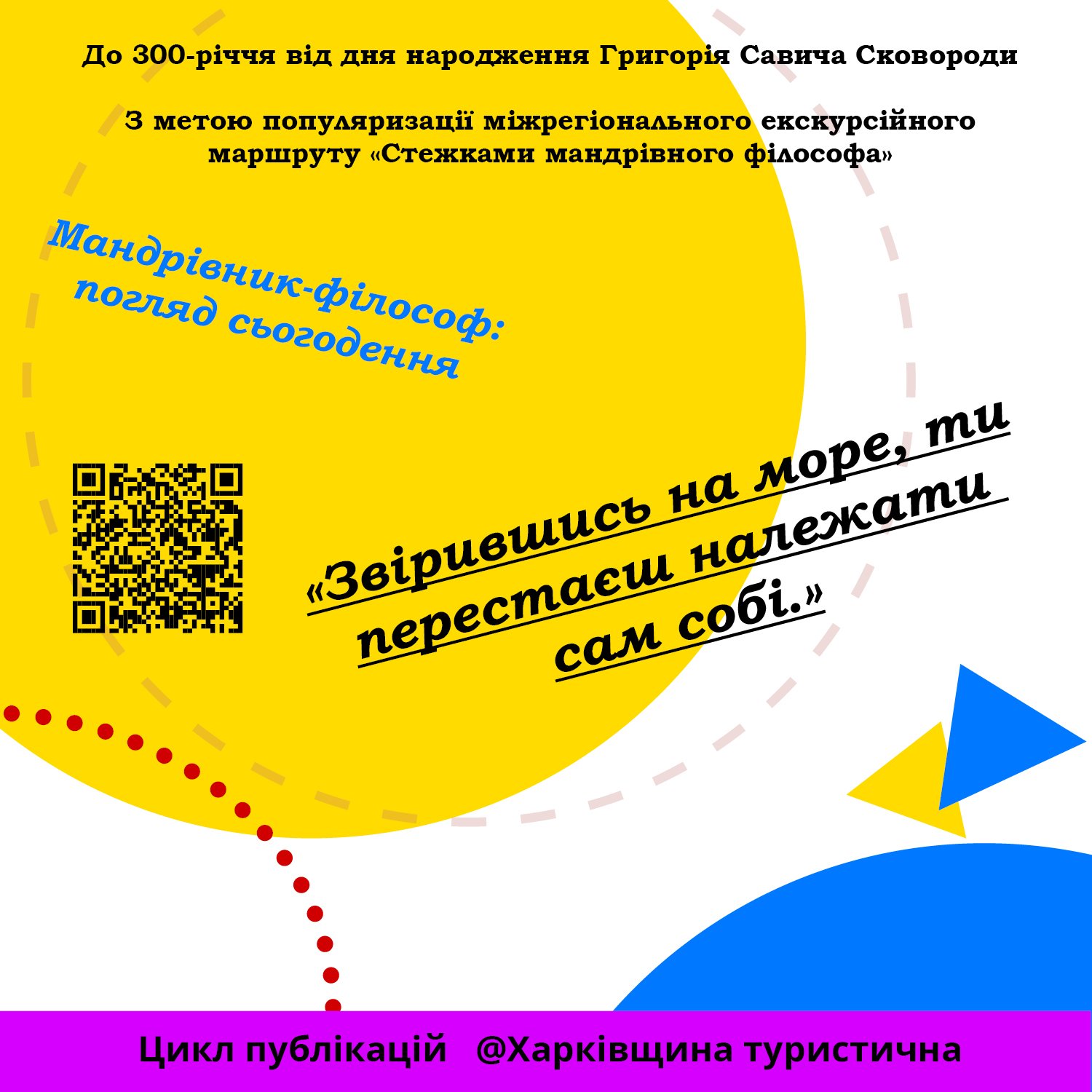 Цим проєктом ми нагадуємо про відзначення 300-річчя від дня народження Григорія Савича Сковороди у 2022 році та популяризуємо міжрегіональний екскурсійний маршрут «Стежками мандрівного філософа».