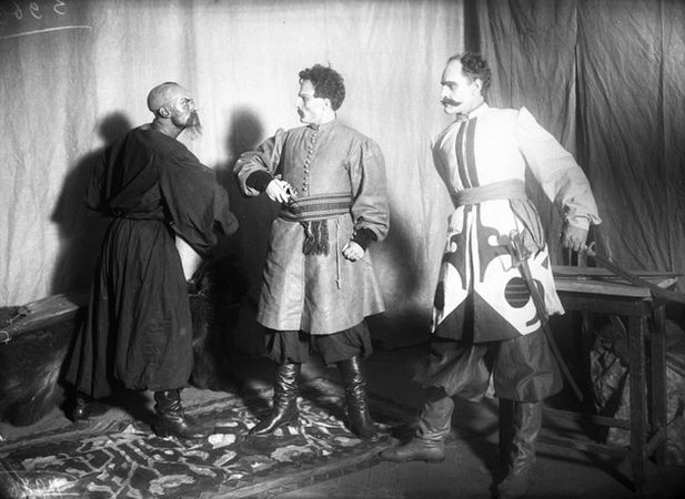 - Епізод п’єси Івана Карпенко–Карого, режисера Фавста Лопатинського «Сава Чалий» (1927). Гнат Голий — Данило Антонович, Сава Чалий — Лесь Сердюк, Шмигельський — Степан Шагайда. «Березіль», м. Харків. Джерело: https://openkurbas.org