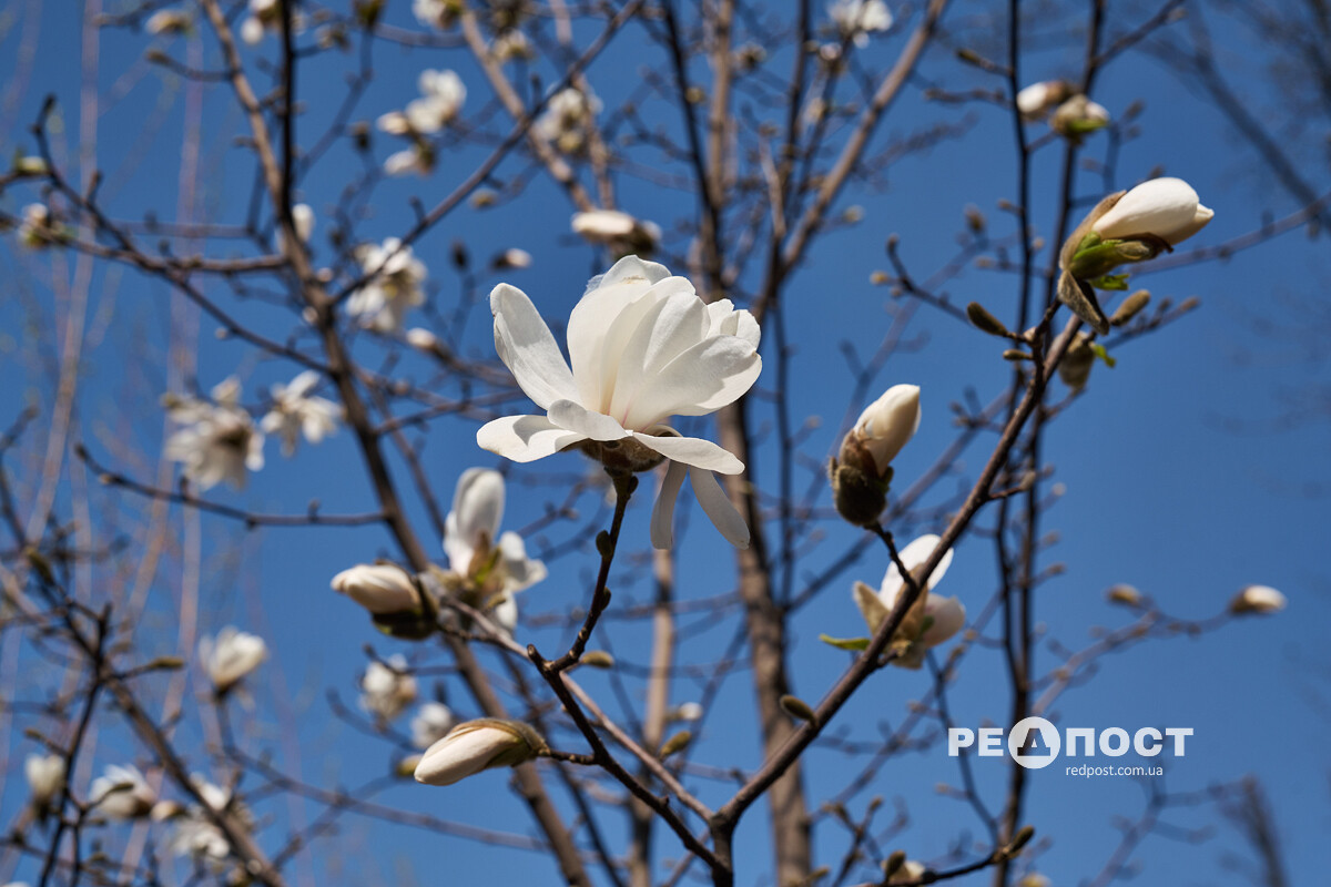 Поки що розпустилися далеко не всі квіти, але відвідувачі вже можуть помилуватися магноліями на кількох локаціях парку.