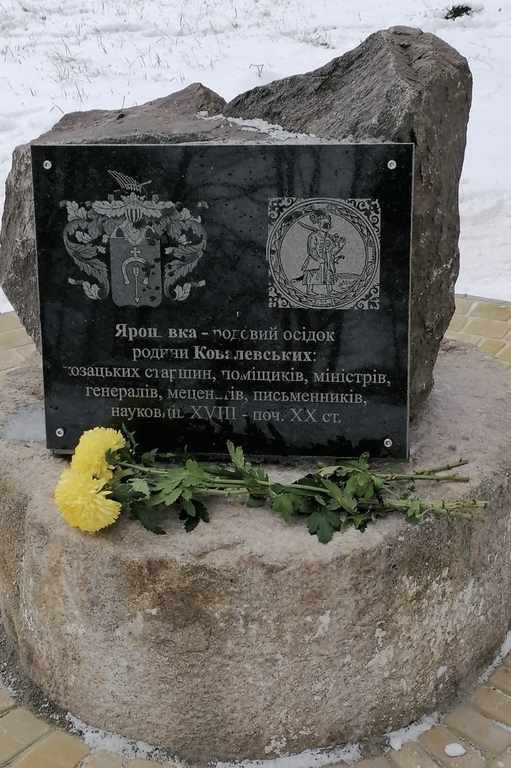 У листопаді 2020 року в парку села Ярошівка за ініціативи місцевої громади та істориків, які прагнули увічнити пам’ять про знатних земляків, було встановлено пам’ятний знак на честь роду Ковалевських.