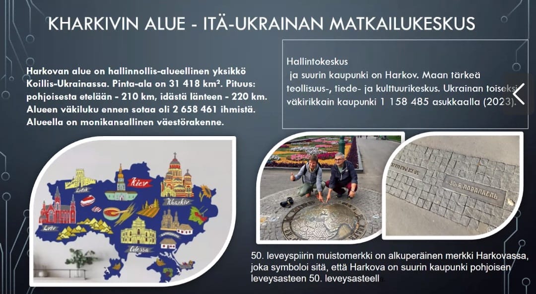 І якщо минуло разу українці відвідали віртуальну екскурсію «Оулу – затишне північне місто. Життя на межі з Лапландією», то цього разу фінська аудиторія познайомилася з туристичним потенціалом Харківщини. Вітала гостей заходу директор ОКЗ «ХОМЦТ» Валентина Холодок, яка презентувала роботу Центру туризму та наголосила, що дуже хоче побачити на Харківщині гостей з Фінляндії і обіцяє їм гостинну, теплу зустріч!