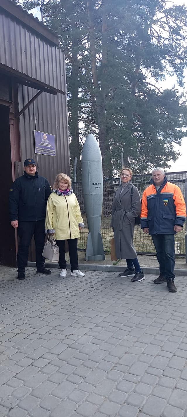 З метою налагодження комунікації та глибокого вивчення матеріалу відбулася наша робоча поїздка до Міжрегіонального центру гуманітарного розмінування та швидкого реагування ДСНС України. Саме центром, крім основної роботи, відбувається фіксація руйнувань житлових та інфраструктурних об’єктів і, що найстрашніше, жертв, яких зазнає рятувальна служба. Вже виготовлено меморіальний хрест, який згодом буде встановлено на честь загиблих, і розпочато формування музейної експозиції щодо російського вторгнення від лютого 2022 року.