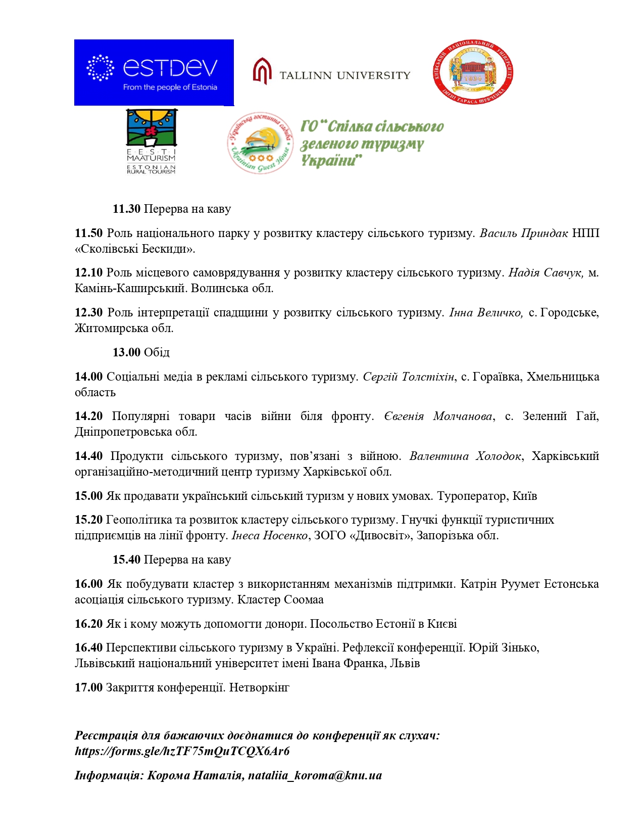 Нинішня конференція представляє результати дослідження та історії успіху, які описують, наскільки гнучким і стійким може бути підприємництво українського сільського туризму.