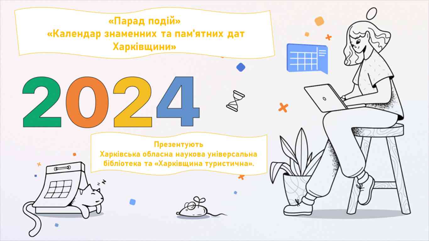 Тож просто запрошуємо вас сьогодні до Віртуальної подорожі знаменними і пам’ятними датами Харківщини протягом 2024 р.