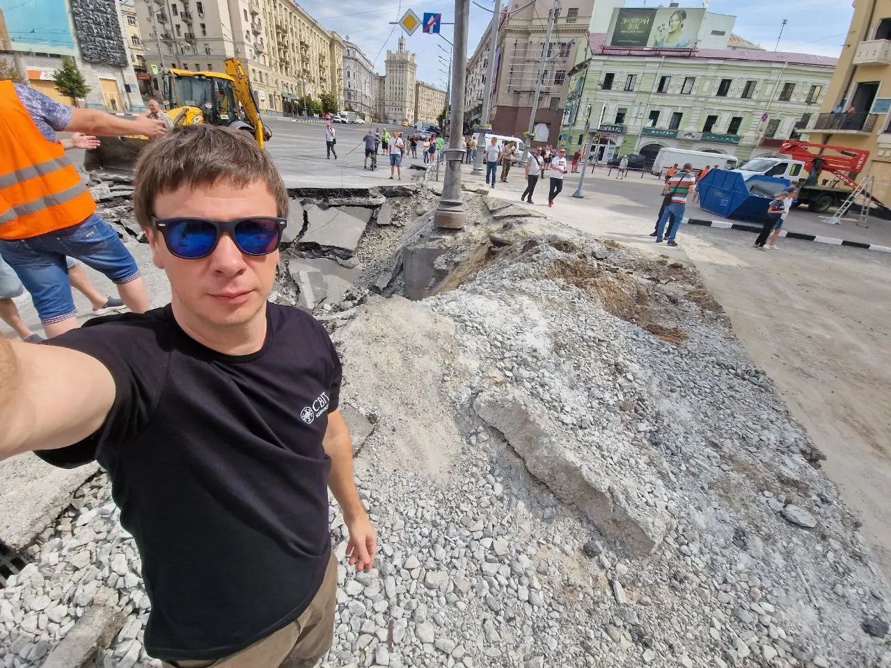 Відомий ведучий Дмитро Комаров побував у Харкові після ракетного удару по центру міста. Фото ведучий "Світу навиворіт" опублікував у своїх соцмережах.