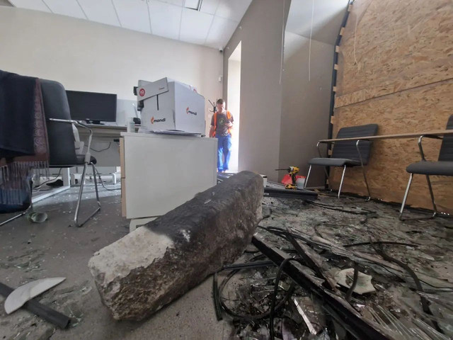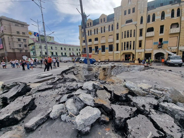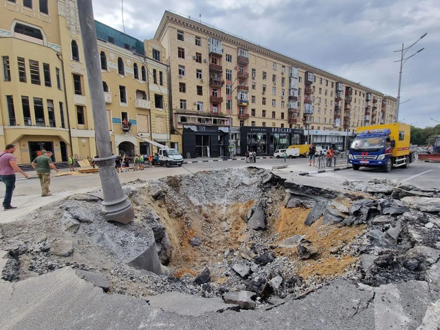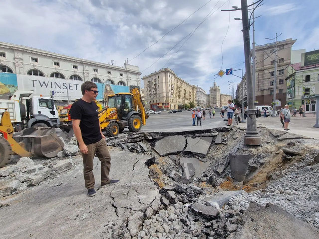 Харків сьогодні. Щоденні прильоти, щоденний ракетний обстріл житлових районів, історичного центру міста. На фото один із найпотужніших за сьогодні прильотів – у центрі міста, біля пам'ятників архітектури. Сьогодні на третьому поверсі знайшов важкий шматок бордюру, який злетів та потрапив у вікно офісної будівлі після удару С-300 в дорогу Очевидно, що про «високоточність» немає навіть мови, але вона росіянам і не потрібна – вони йдуть найпідлішим і нечеснішим шляхом ведення війни проти мирних людей. Як бачите на фото, на місці прильоту навіть натяків на військові об'єкти немає", - написав Комаров.