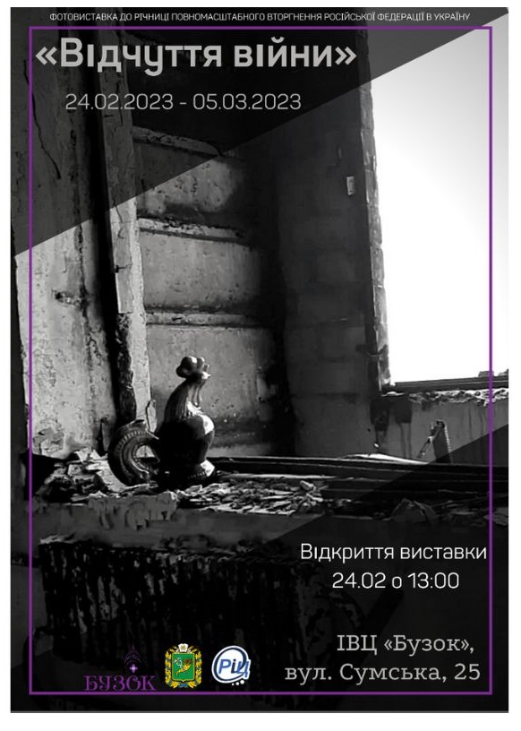 З 24 лютого 2023 року в інформаційно-виставковому центрі «Бузок» (інформаційно-виставковий відділ КОМУНАЛЬНОГО ПІДПРИЄМСТВА «РЕГІОНАЛЬНИЙ ІНФОРМАЦІЙНИЙ ЦЕНТР» ХАРКІВСЬКОЇ ОБЛАСНОЇ РАДИ) стартує новий проєкт, фотовиставка «Відчуття війни», що присвячена річниці повномасштабного вторгнення рф в Україну.