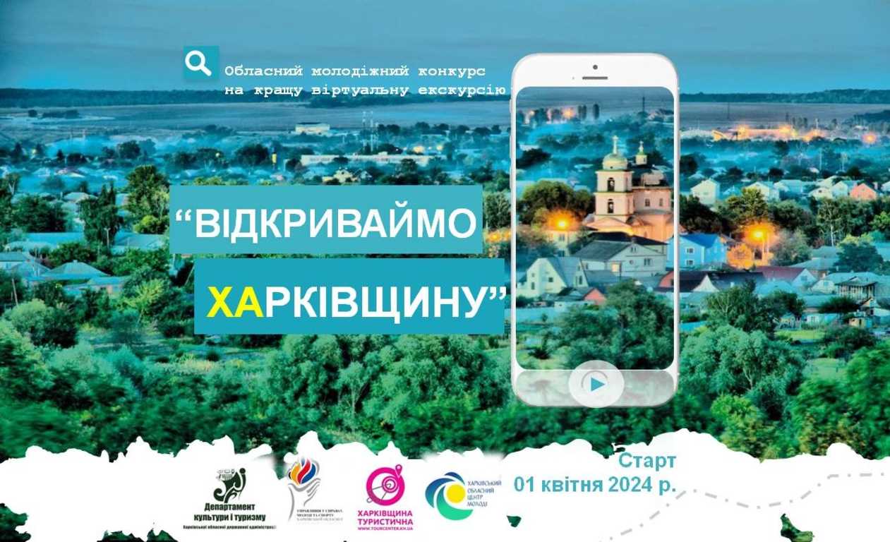 З метою популяризації туристичного потенціалу Харківщини, посилення національно-патріотичної свідомості молоді, належної популяризації історико-культурної спадщини, залучення молоді до екскурсійної діяльності як до унікального способу вивчення історії рідного краю та на підтримку ініціативи Державного агентства розвитку туризму України щодо розробки Стратегії відвідування місць пам’яті, які пов'язані з військовою агресією рф, з 01 квітня 2024 р. стартував Обласний молодіжний конкурс «Відкриваймо Харківщину» на кращу віртуальну екскурсію.