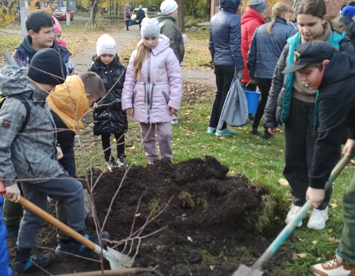 Первомайці та гості з сусідніх громад зібралися задля доброї справи. Копають, загортають, садять.
