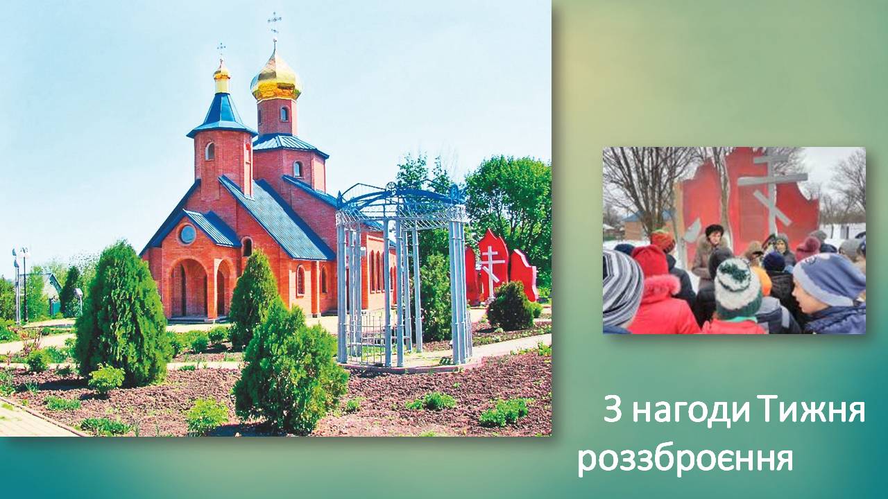 З нагоди Тижня роззброєння: Меморіальний комплекс «Храм на крові» - «Єфремівська хатинь».