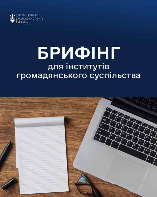 Міністерство молоді та спорту України запрошує приєднатися до брифінгу щодо конкурсу з визначення проєктів, розроблених інститутами громадянського суспільства з утвердження української національної та громадянської ідентичності, для реалізації яких надається фінансова підтримка у 2026 році.