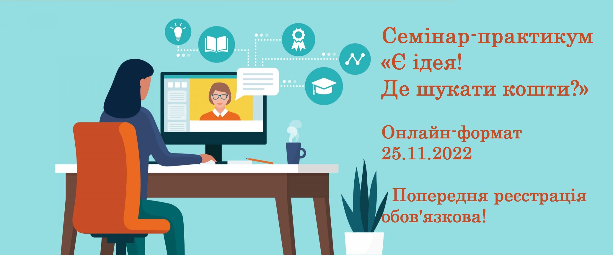 Запрошуємо долучитися до участі в обласному онлайн семінарі-практикумі «Є ідея! Де шукати кошти?».