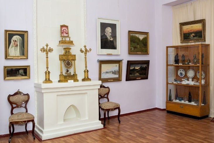 Тут й іконопис XVII-XIX сторіччя, і акварелі Івана Айвазовського та Олександра Іванова, і портрет пензля Іллі Рєпіна, і малюнки олівцем Івана Шишкіна та Тараса Шевченка, і пейзаж Ісаака Левітана, і "Етюд церкви" Миколи Реріха.